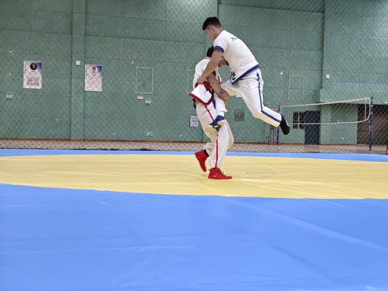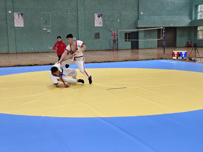 在下午的决赛中,刘小涛再接再厉,稳定发挥,对手犯规、对手倒地……比分来到了“5比0”的关键时刻,只要再得1分就能获胜。这时,刘小涛抓住对手急于得分的心理,轻轻一晃,躲过了对手的抓抱,并使其倒地,获得3分。最终,他以“8比0”获得一等奖,现场响起了热烈的掌声。