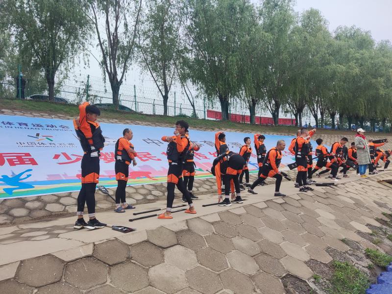 当日上午,气温微凉。在沙颍河水上运动中心,医护人员、救援人员、志愿者等工作人员早早到岗,为赛事的顺利进行做好了充足的准备。运动员们身穿救生衣,正在岸边热身,等待入场比赛。