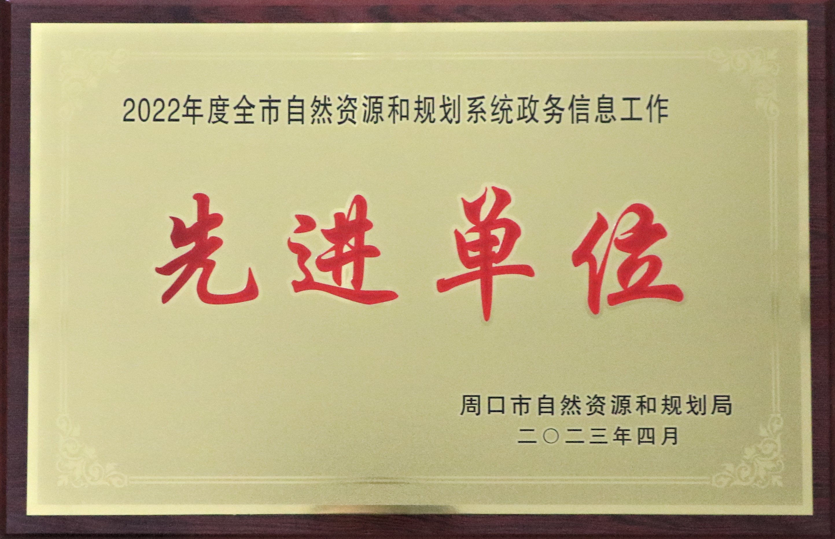 近日,周口市自然资源和规划局印发《关于表彰2022年度全市自然资源和规划系统政务信息工作先进单位和先进个人的通报》,太康县自然资源局荣获全市系统政务信息工作先进单位,2名同志被表彰先进个人。