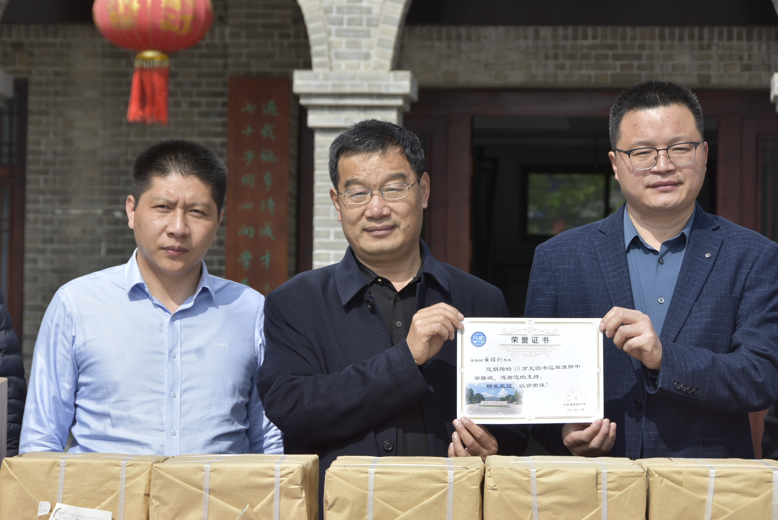 殷殷校友情,浓浓图书香。在淮阳中学建校120周年之际,4月25日上午,淮阳中学99届校友黄锦钊来到母校,向母校捐赠三千多册价值10余万元的新版图书,以此表达对母校的感恩之心。淮阳中学党总支书记白子兴代表学校接受了捐赠。