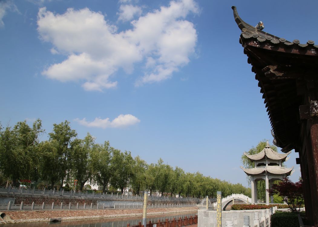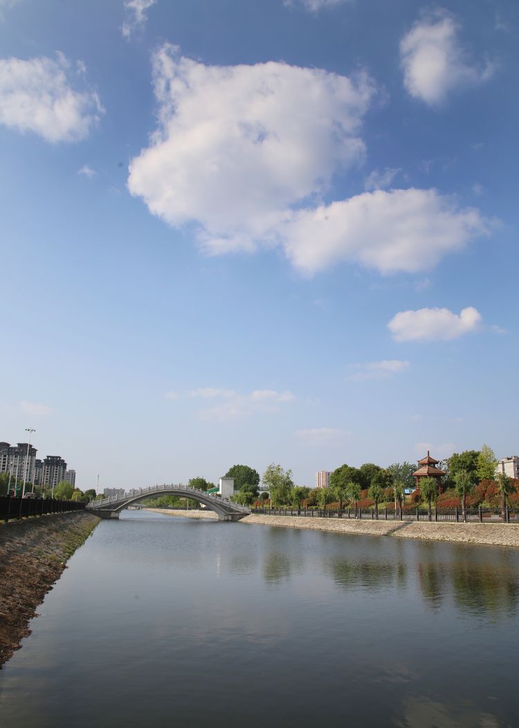 4月27日,鹿邑县城内的五河两岸,碧水蓝天绿树倒映,清新的空气、优美的环境,尽显鹿邑五河生态景色。在老子故里一片大地上,五河横穿城区,蓝天白云、碧水绿植早已成为亮丽的底色。生态之美、人文之美、和谐之美的美丽图画悄然绘就。(周口日报全媒体记者 侯国防 通讯员 胡洪涛 摄)③6