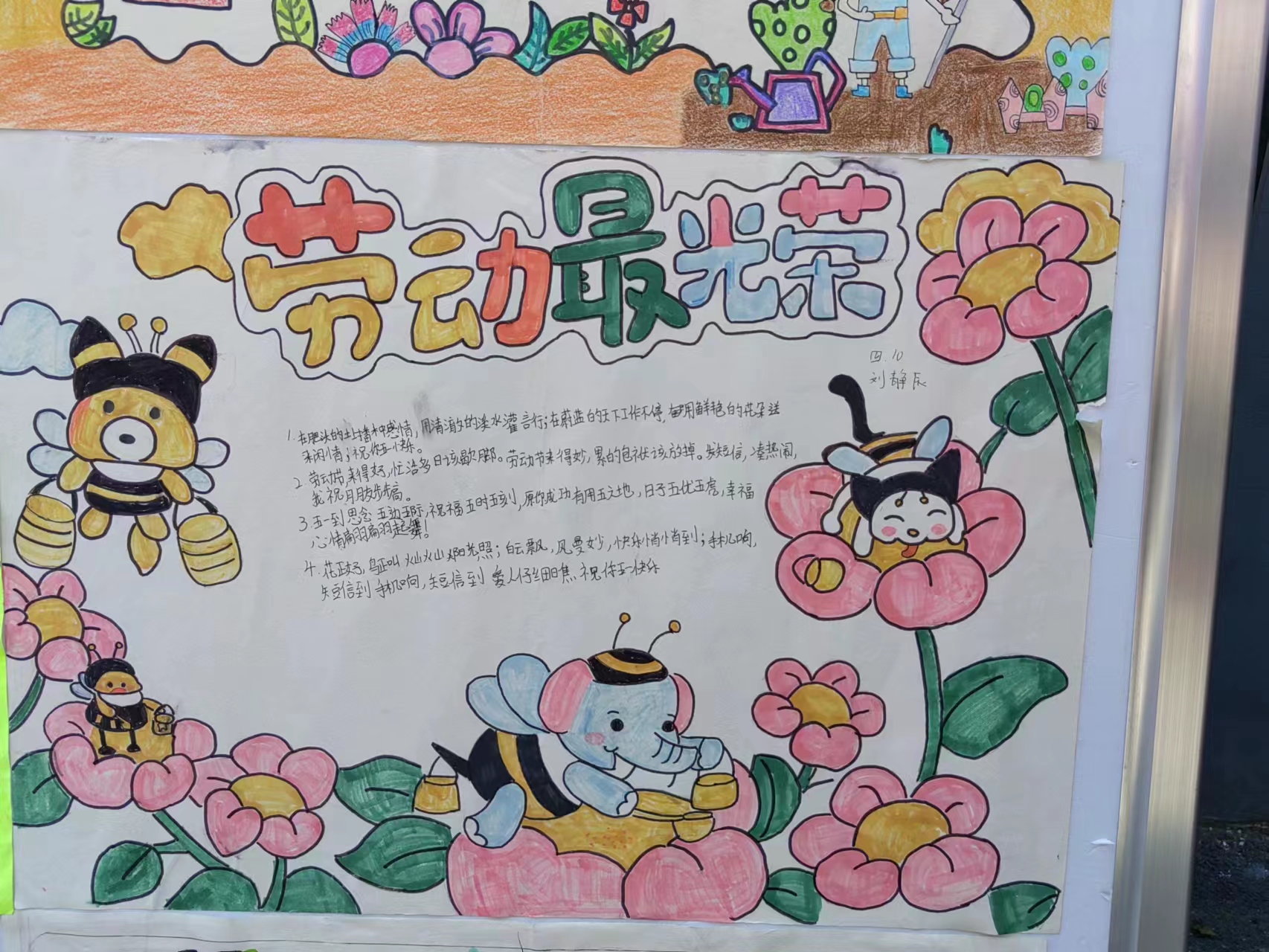 各班级同学参与书法类、绘画类两个比赛项目,他们认真准备,积极创作。学校共收到绘画作品和书法作品65件。经评审组评审,共有12幅绘画作品、22幅书法作品入围,并参与展出。绘画作品有歌颂赞美劳动者的,有讲述劳动辛苦节约粮食的,有讲述劳逸结合的。所展出书法作品形体方正,笔画平直,重心稳定,整体均衡,左右相应。