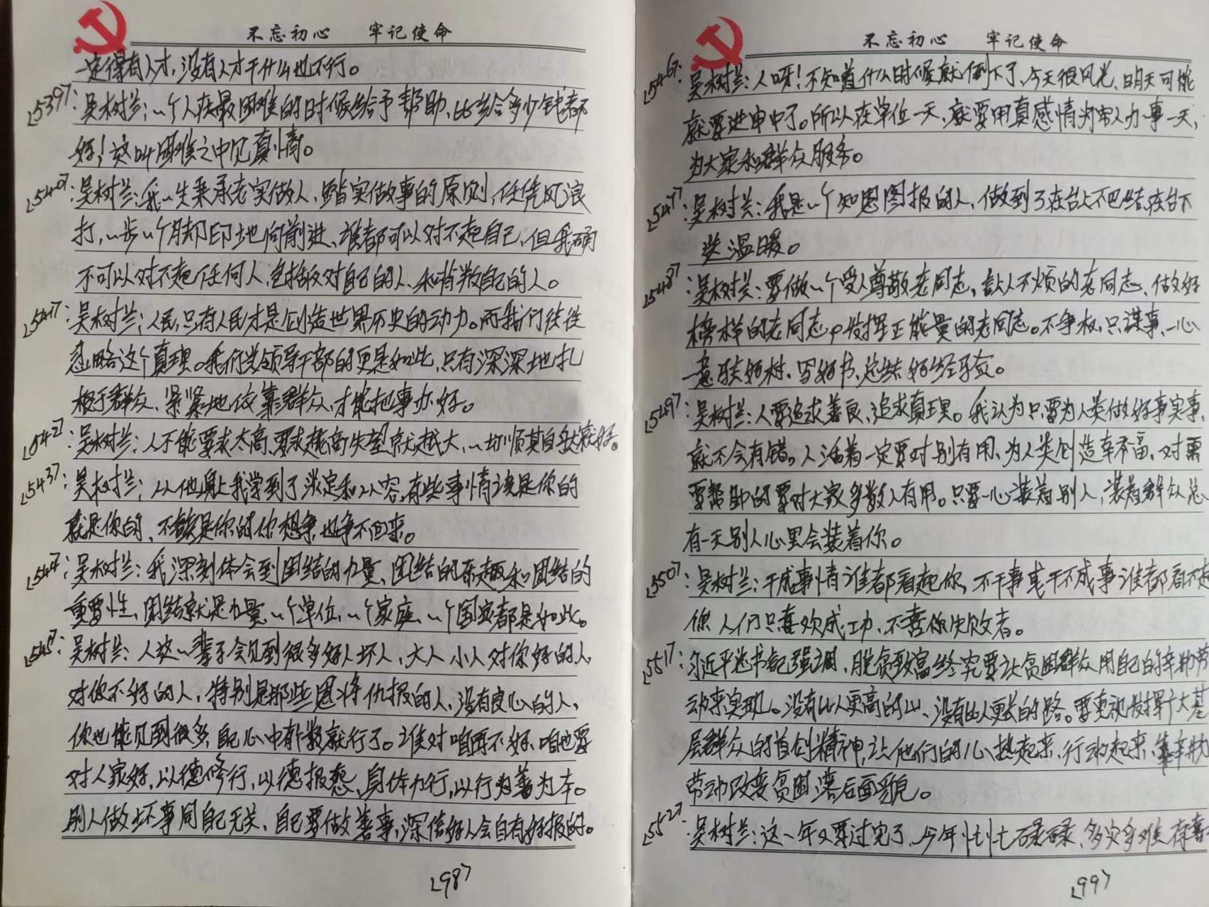 “我最爱看伟人类、时政类、党史类、劳模类、革命烈士类、法律法规类的书籍报刊。”闫修付说,几十年来,阅读一直是他每天享受美好生活的休闲方式和好习惯,他坚持每天在午饭后静下心来读书看报一个半小时。就连几年前照顾生病的妻子时,他也是手里拿着书,从没有间断过阅读。“书籍和报刊的来源一是买,二是借,三是捡(人家不要了就收藏起来),四是靠朋友赠送。”闫修付从部队复员至今,阅读量超3000万字,近年来,他摘抄好句段215页。