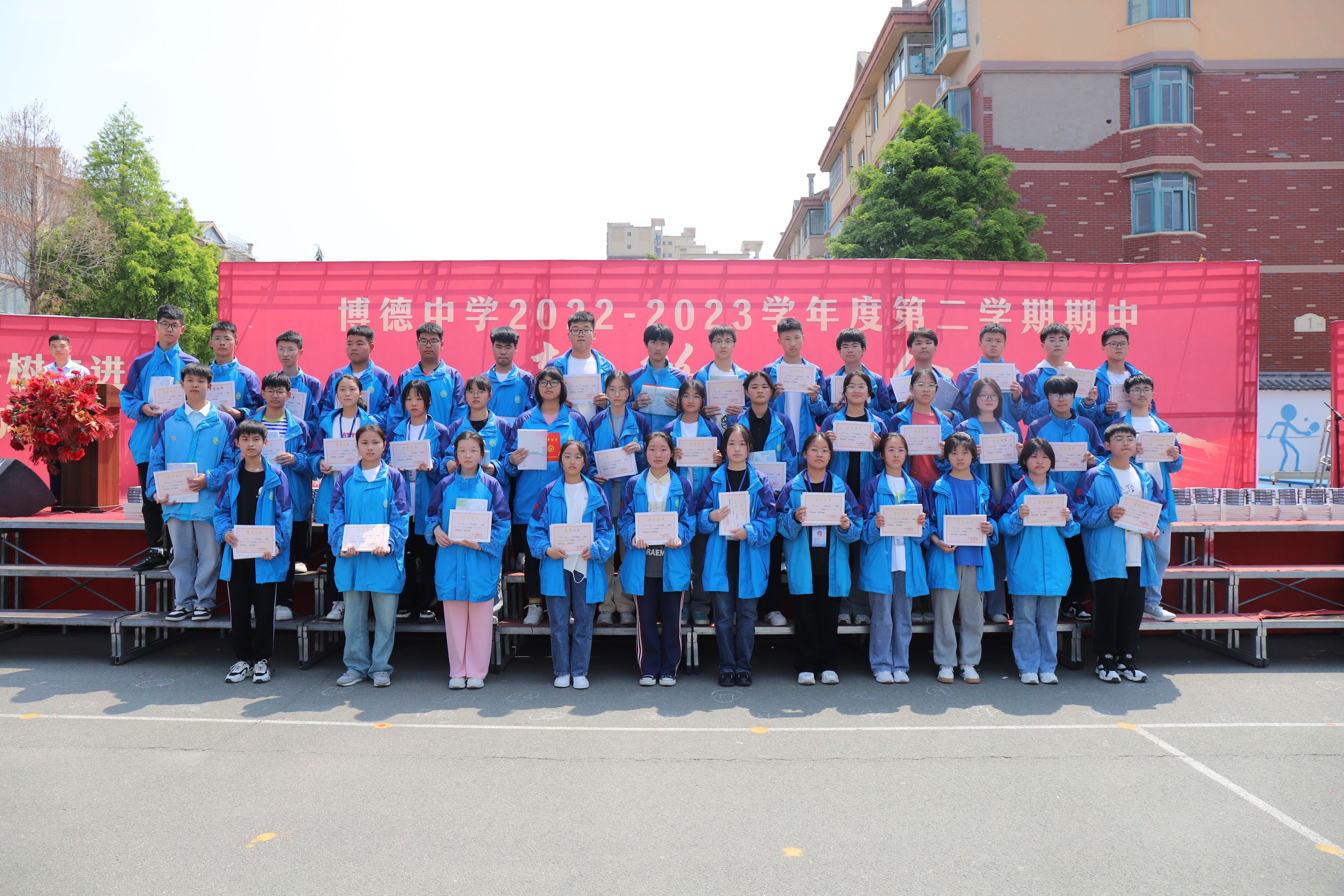 近日,鹿邑县博德中学召开期中总结暨优秀学生表彰大会。四小.博德.弘德联盟校区总校长皇昊、校委会副主任段亚鹏及博德中学校长刘会娟等班子成员出席大会,学校全体教师及学生、部分家长参加大会。