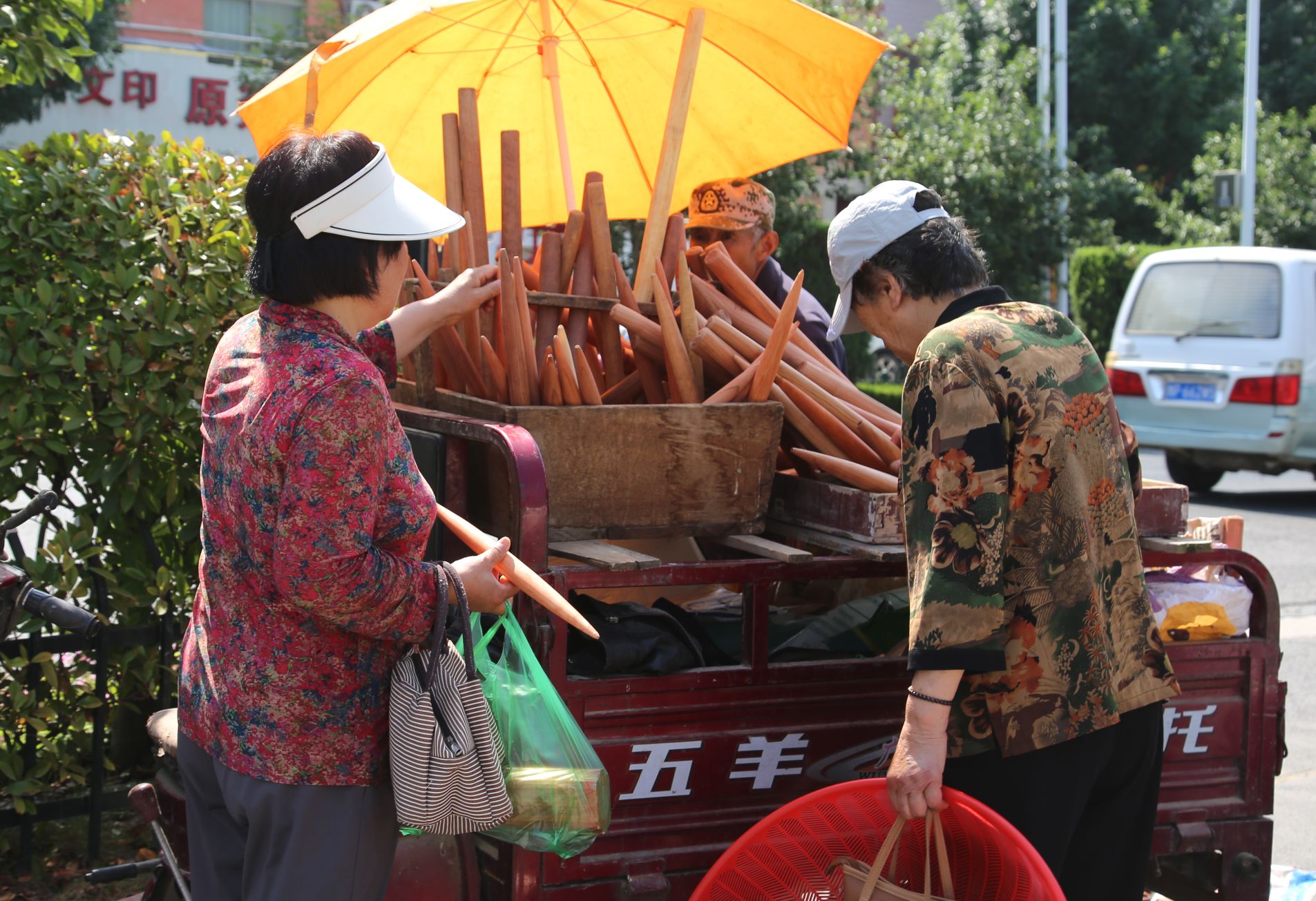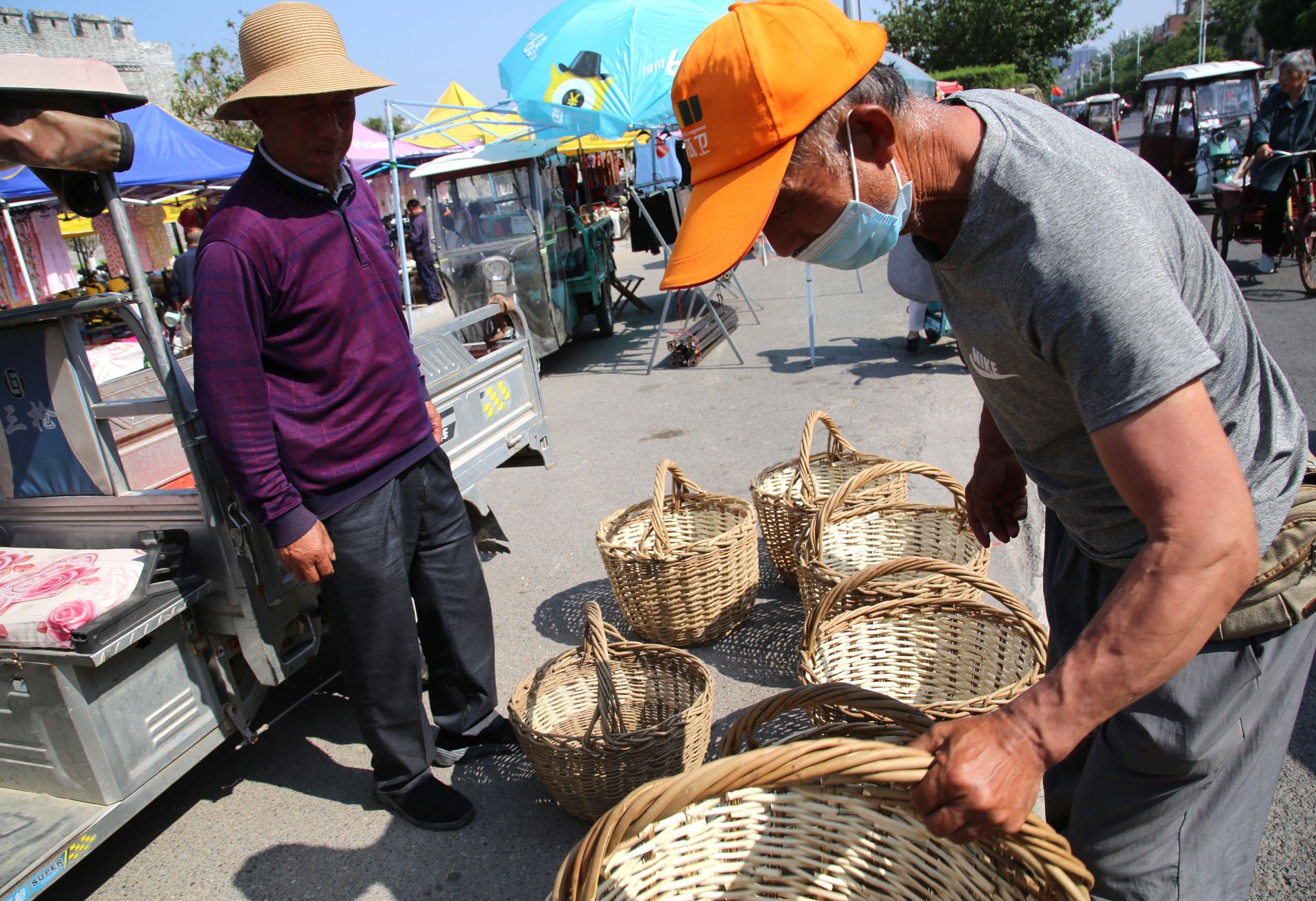 5月17日(农历三月二十八)是鹿邑县传统古会,来自县城附近乡村的编制巧匠、木匠带着农副产品条框、笆斗、筛子、箩头、案板、板凳、杆杖子等用具,摆放在城东护城河沿岸。上午9时许,三三两两的群众走进市场,争相挑选收麦农具,购买带有乡土气息、人间烟火氛围的杆仗、小木凳、竹篮子等用具,护城河岸边人流涌动,熙熙攘攘,升腾着久违的人间烟火气。