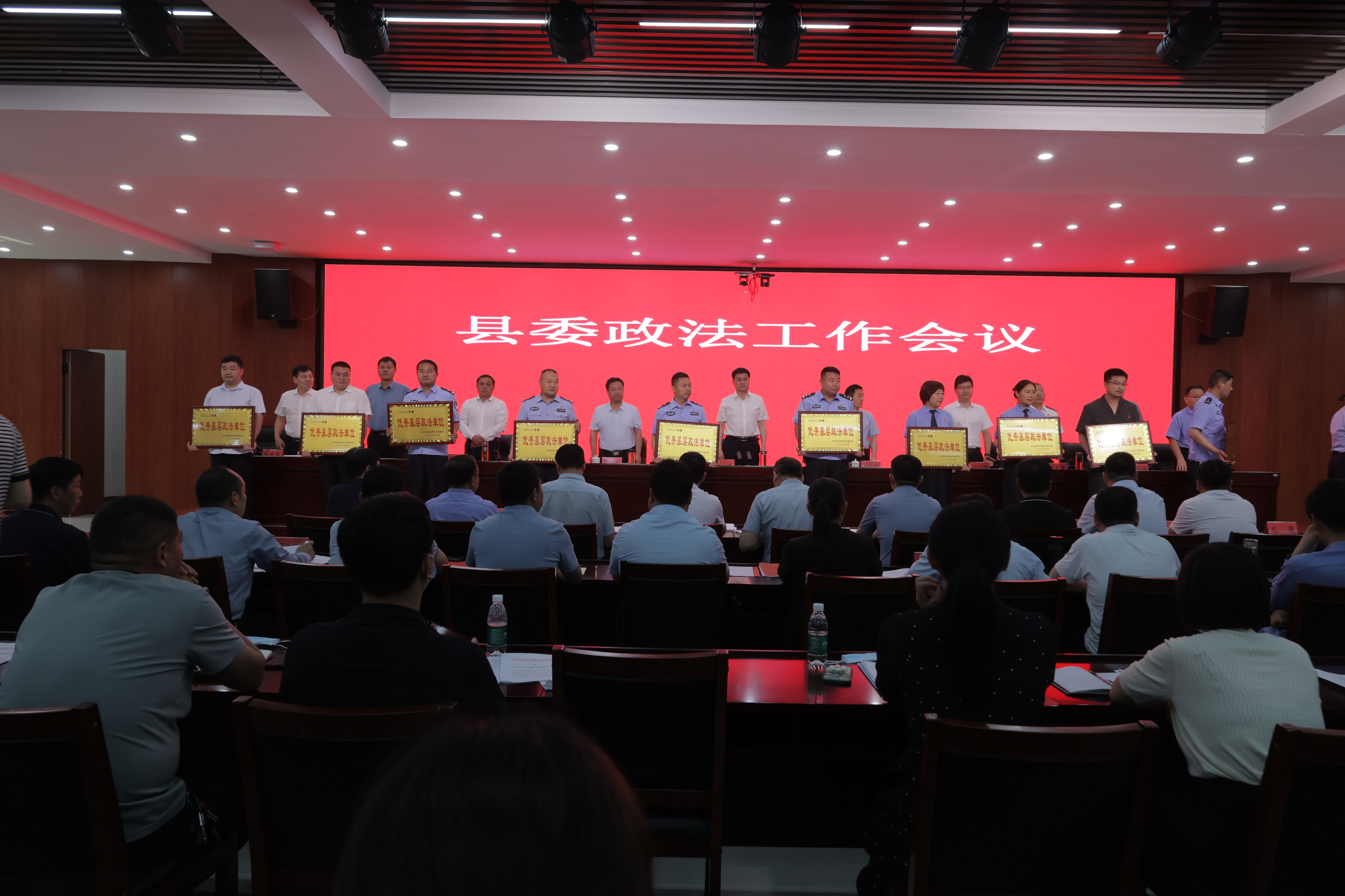 县委副书记刘贡献宣读了省委、省政府,市委、市政府,县委、县政府对于我县2022年度政法工作优秀单位和个人的表彰决定。与会领导向受表彰的单位和个人进行颁奖。