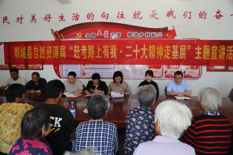5月19日,郸城县自然资源局组织宣讲团到汲冢镇张楼行政村开展“赶考路上有我·二十大精神走基层”主题宣讲活动,郸城县自然资源局宣教股韩硕同志作主题宣讲,该局副科级干部魏雪梅、机关党支部书记张兵、驻村书记吴广强、村委干部和村民代表40余人参加宣讲活动。