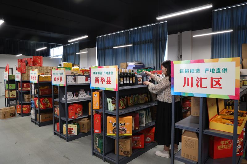 为响应政府“帮农助农、聚焦三农、振兴乡村经济”号召,河南笑播文化传媒有限公司自运营以来,与多个县市区农特产品供应商建立起良好合作关系,免费对社会自由职业者进行短视频和抖音直播带货培训,从而带动上千名社会剩余劳动力在抖音平台实现再就业。图为公司员工正在整理极具地域特点的地方特产。