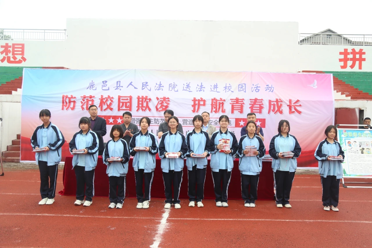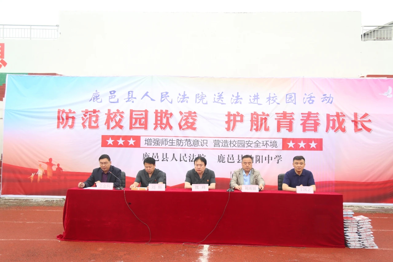 为加强学校法治教育建设,培养学生良好的法治意识,防范校园欺凌事件发生,构建和谐平安的法治校园,5月24日,鹿邑县伯阳中学在校园内举行以“防范校园欺凌 护航青春成长”为主题的送法进校园活动。县人民法院领导、法官,县教体局领导,伯阳中学校长王国立、党支部书记王金利等和初中部全体师生出席活动。