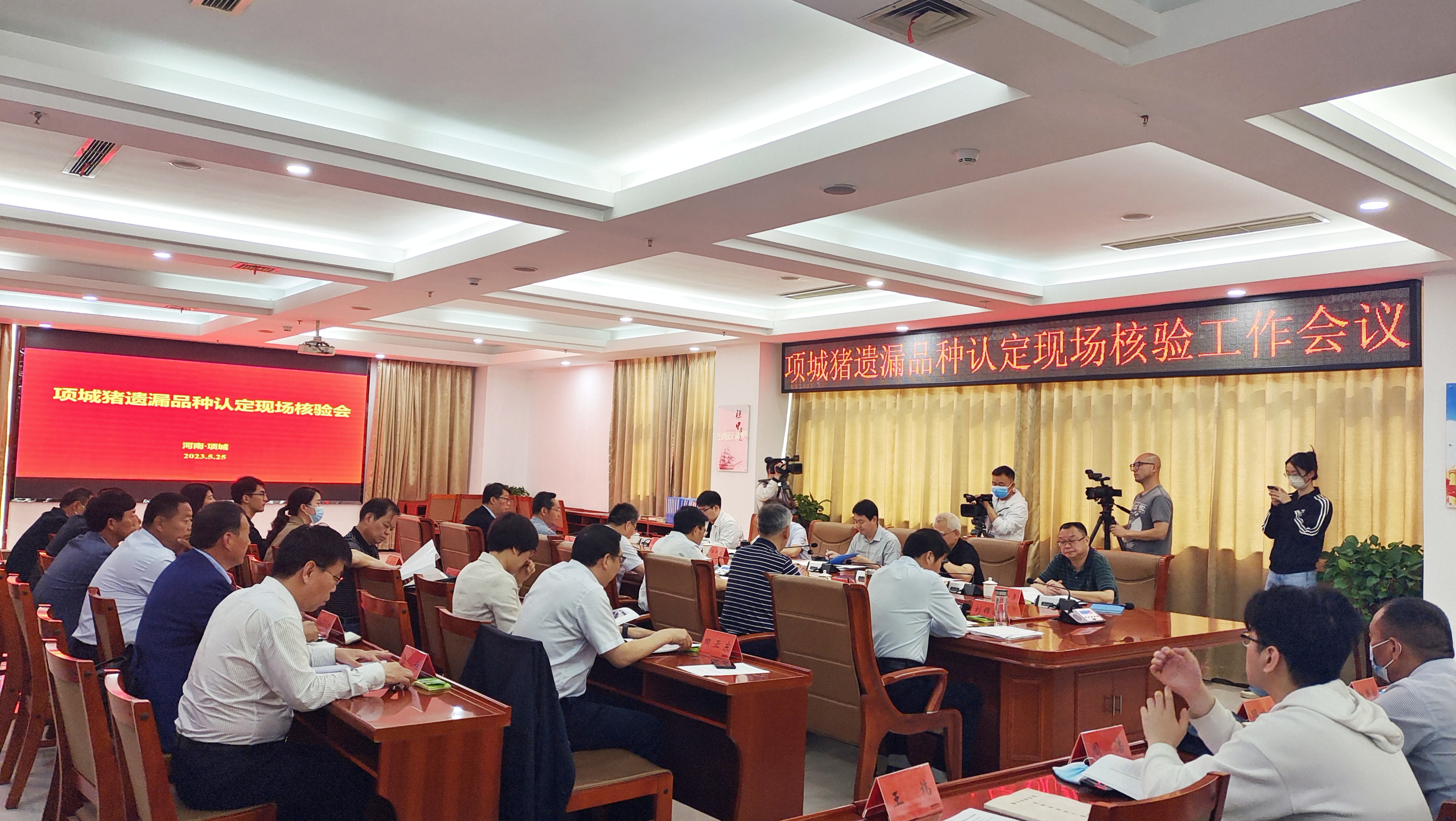 5月25日上午,在召开的“项城猪”遗漏品种认定现场核验会上,专家组成员认真听取有关汇报,现场观看视频资料,对申报材料进行现场质询提问,现场答疑,充分肯定了品种资源保护单位对“项城猪”开展的大量基础研究和保护工作,最终形成了“遗漏品种‘项城猪’历史记载清楚,真实存在,延续至今,佐证资料齐全。现场核实的‘项城猪’群体体型外貌和生产性能等与历史资料记载基本一致,繁殖性能突出。现场所测个体的体重、体尺和乳头数等指标,以及现场繁殖记录数据与申报材料相符。”的一致性意见。