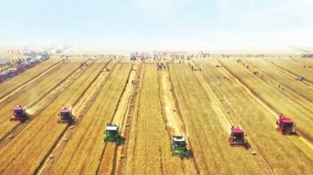 5月31日,沈丘县组织本地1128台大型联合收割机和外地赶来的100余台履带式联合收割机,分赴全县22个乡镇(办),投入小麦收割工作。