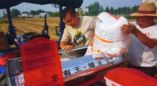 “党的政策好,干部又热心帮忙,我流转了1900多亩地,你看到了,这小麦收割和玉米播种是同步进行的,明天就能收割完成,同时播种也能完成了。”