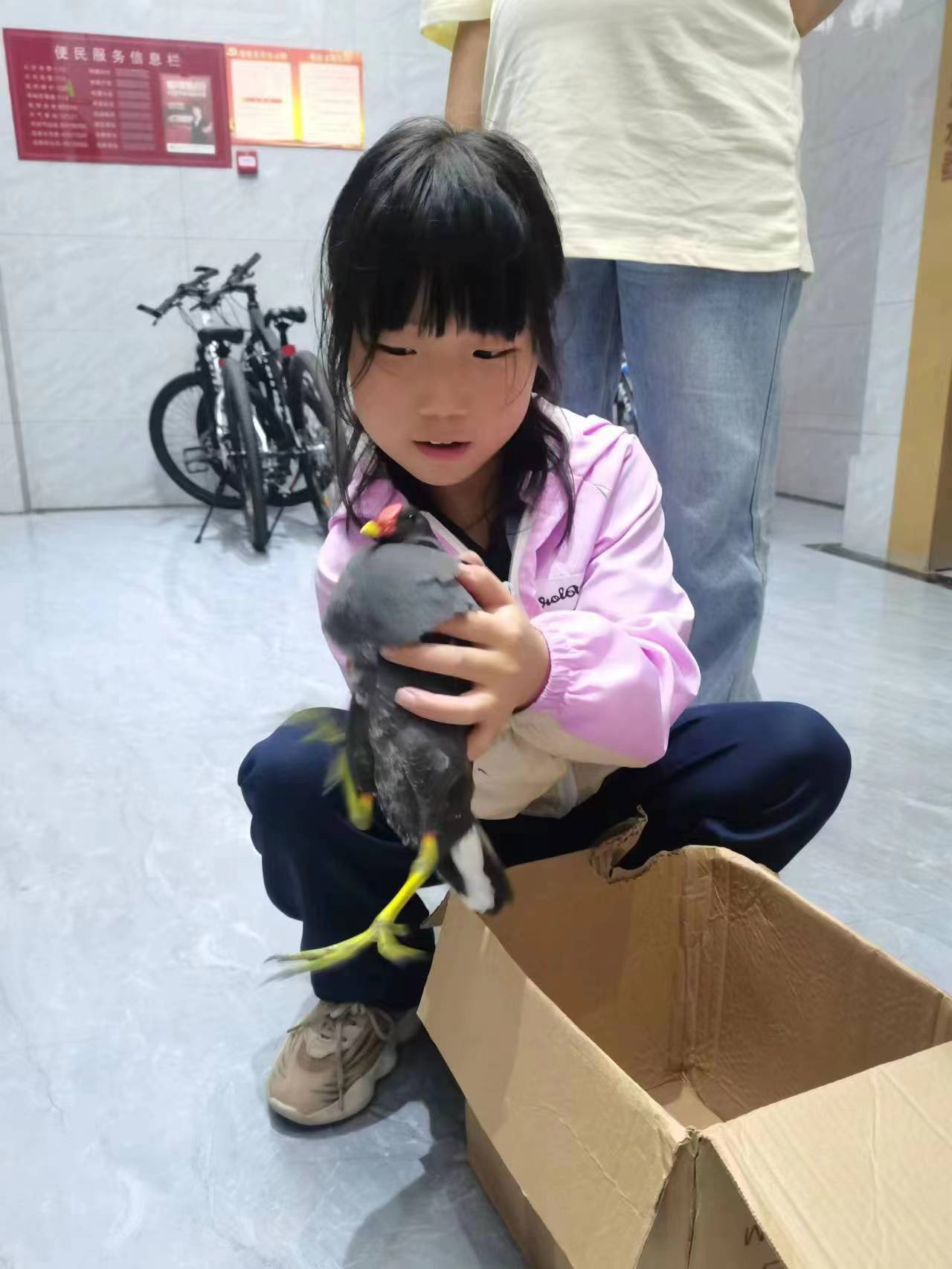 付婧博的妈妈丁女士说:“孩子怕这只鸟被猫狗叼吃了,就赶忙让我们救了她。当我捧起这只鸟的时候,发现它很温顺,也没有挣扎,一定是病了或者受伤了。”