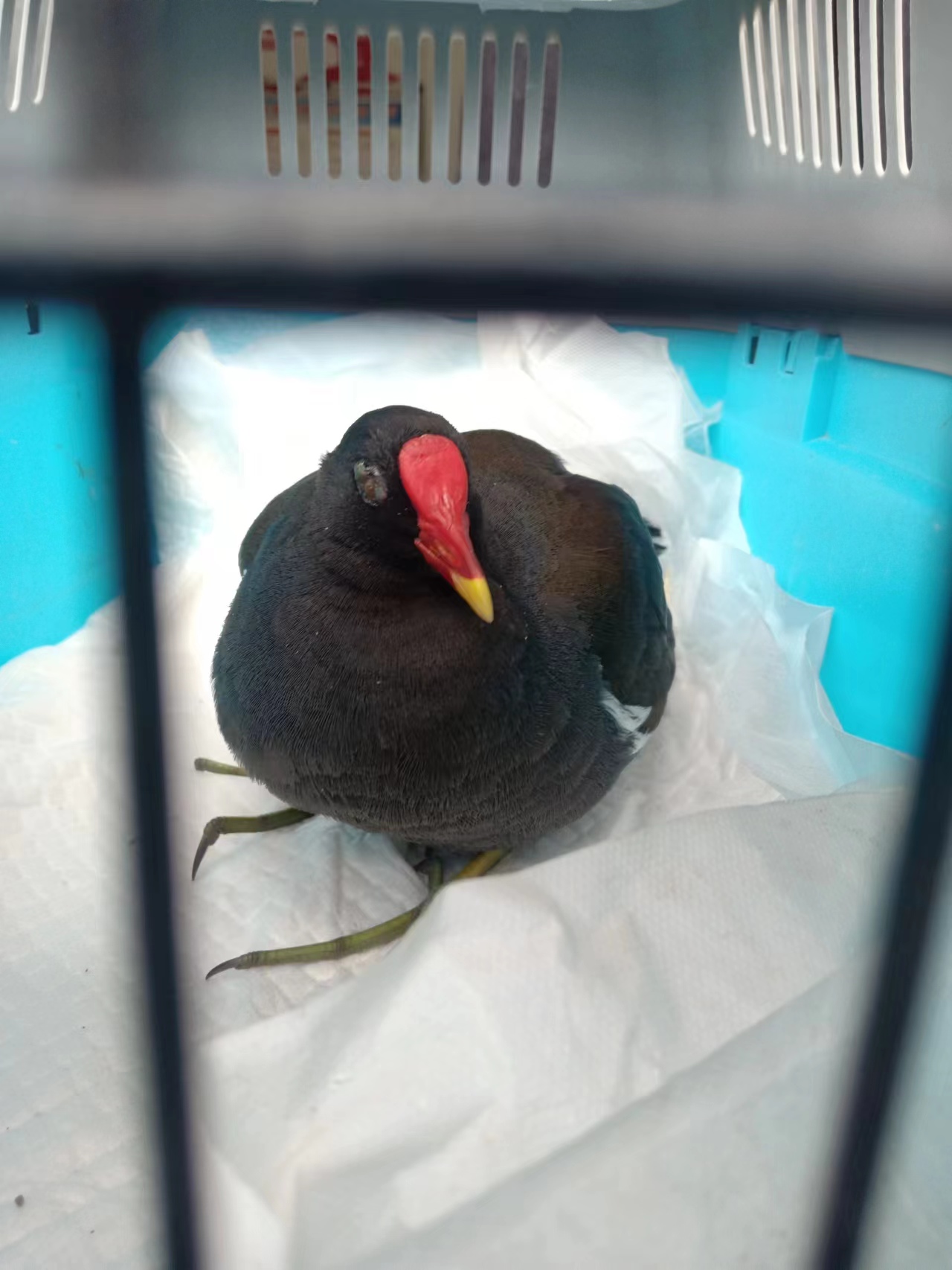 经周口市野生动物救护中心工作人员检查鉴定,这只鸟的确是国家“三有”保护动物黑水鸡,并判断这只鸟可能是在觅食时被枯草或灌木弄伤了右眼,体质虚弱,需要在救助中心调养后方可放归大自然。