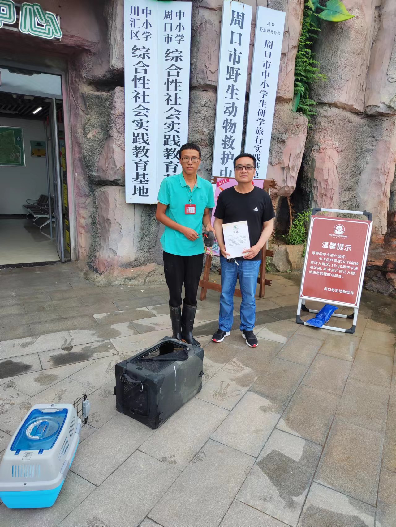 5月30日一大早,项城市自然资源和规划局野保股的工作人员就携带救助箱,顶着淅沥小雨赶到千佛阁派出所,现场接收了这只鸟,并把它及时送到了周口市野生动物救护中心进行救治。