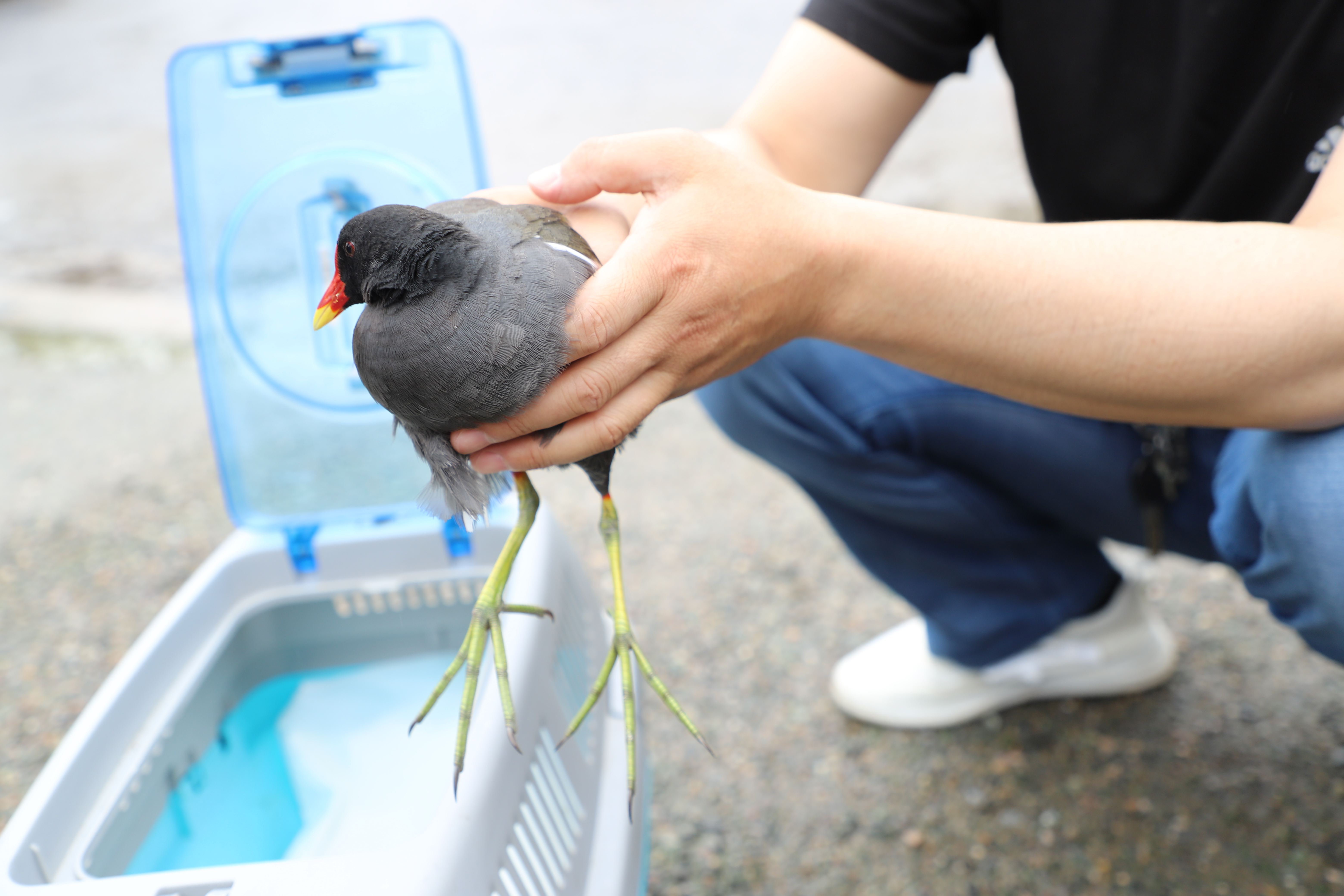 付婧博说:“我发现这只鸟的时候,看到它的鼻子红红的,爪子又尖又长。后来,爸爸通过手机查询,感觉这只鸟应该是国家‘三有’保护动物黑水鸡。”