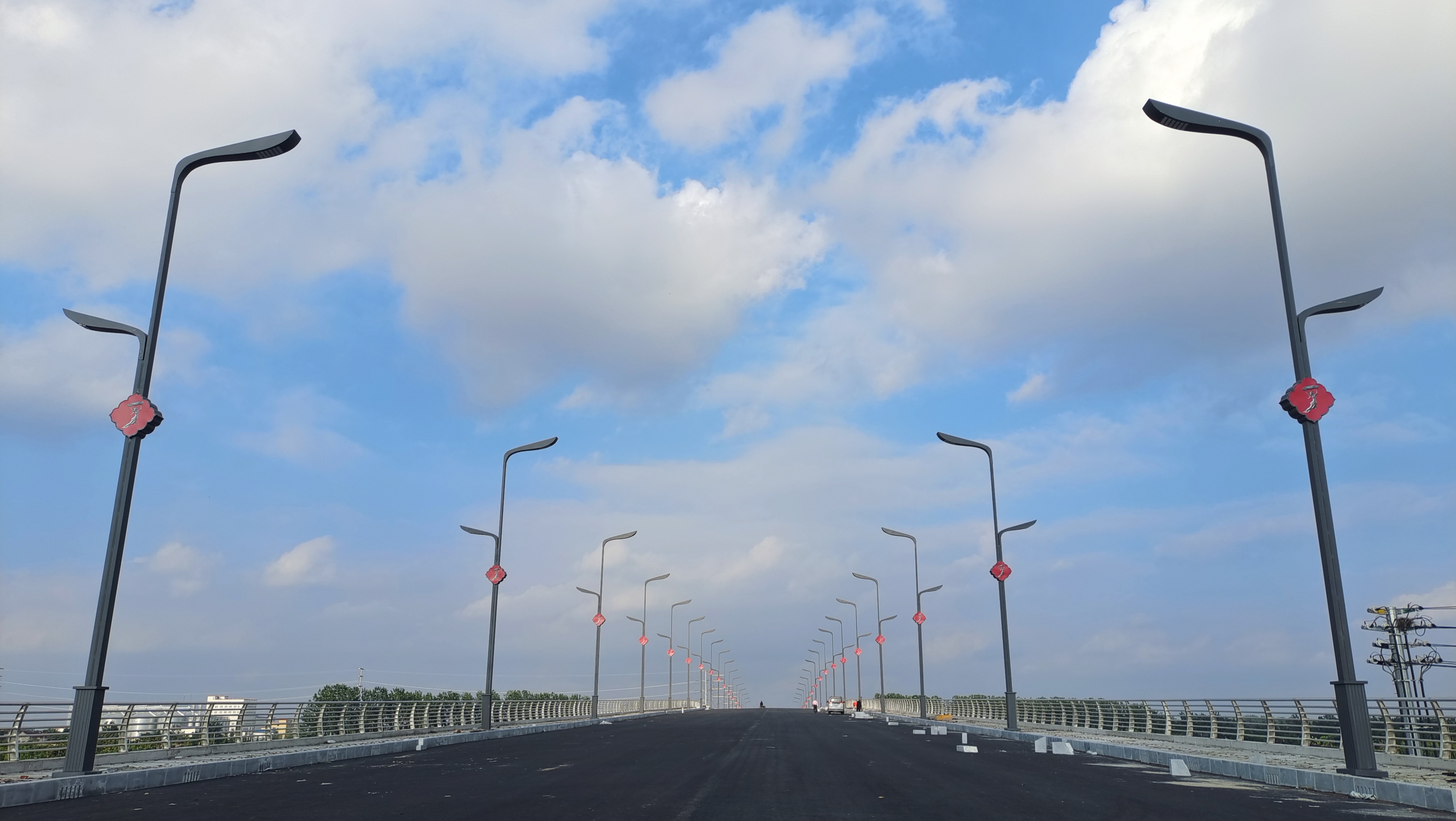 5月30日,西华县安康大道贾鲁河大桥建设项目施工现场,工人正在安装路灯。该项目于去年4月开工建设,目前已进入收尾阶段,即将竣工通车。该工程的顺利实施,标志着西华又打通了一条“断头路”,对缓解该县中心城区交通压力、提高路网承载力具有十分重要的意义。②16