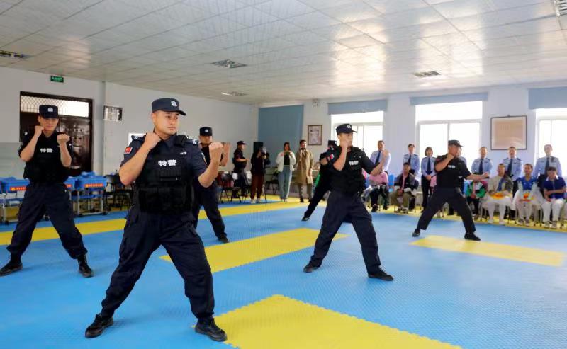 特巡警大队的队员们为孩子们送上了一场精彩的警务擒拿战术表演。队员们一拳一招、帅气威武的模样,赢得孩子们的阵阵掌声,有的还忍不住跟着学起来。对于警察叔叔阿姨们送来的温暖,孩子们的欢喜溢于言表。他们通过敬礼、拥抱、舞蹈等方式向大家表示了感谢,让大家切身感受到他们发自内心的幸福和快乐,整个活动现场温馨而热烈。