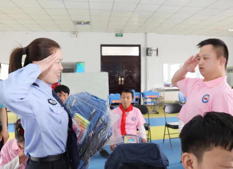活动中,扶沟县公安局和县妇联负责人一行详细了解了学校的办学条件、教学管理、师资配备、学生技能培养等有关情况,走进教室与孩子们亲切交流互动,为他们送上书包、水彩笔等学习用品。希望孩子们以乐观向上、积极进取的精神状态面对生活,鼓励他们要好好学习、健康成长,并对特教学校老师的无私奉献精神表示了由衷的钦佩和感谢。