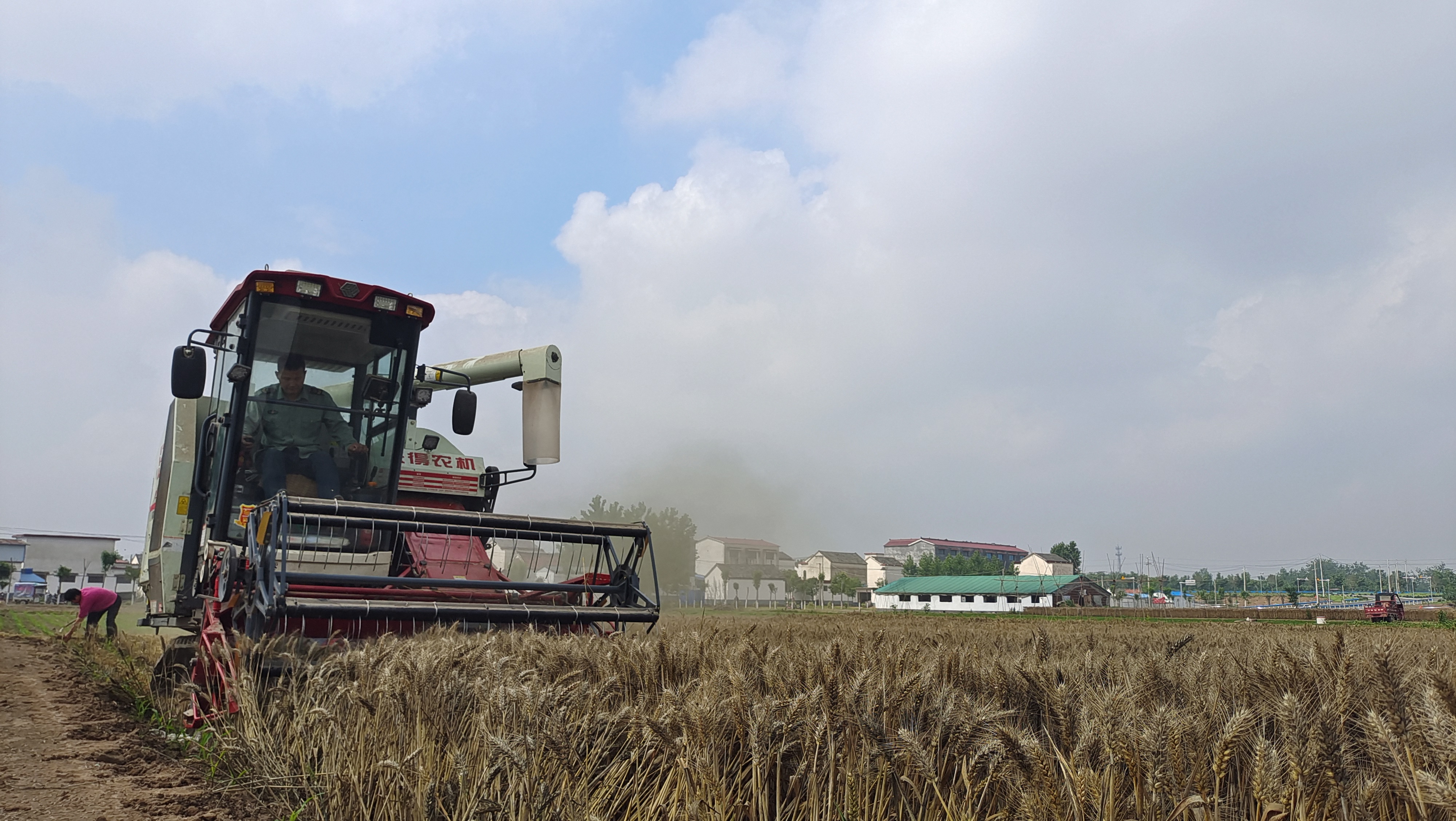 8时许,随着一阵轰鸣声,一台履带式收割机下地开始收割作业,标志着西华县103万亩小麦正式开镰收割。