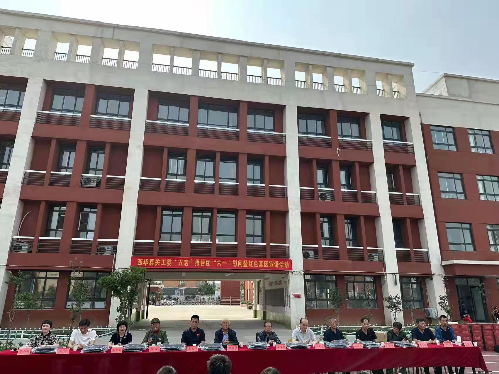 西华县人大代表、爱心人士豫龙食品有限公司总经理李会霞捐资7000元,为学校和孩子们购买了书包、文具和体育用品,作为节日礼物赠给孩子们。