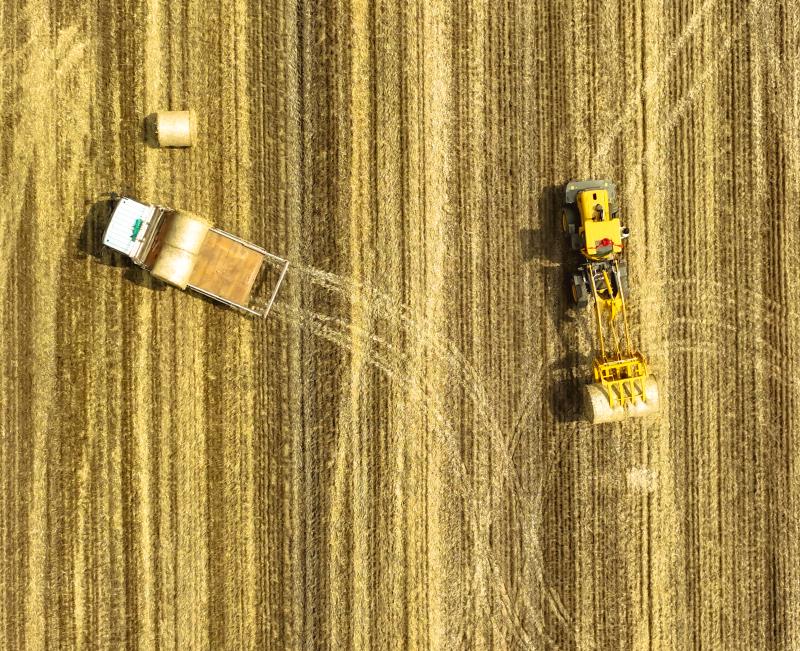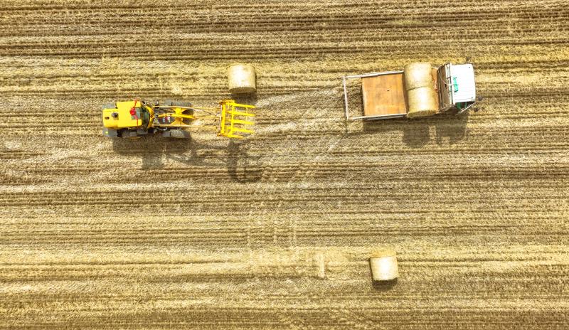 6月1日,秸秆打捆机在河南省周口市扶沟县七里河村田间进行打捆作业。