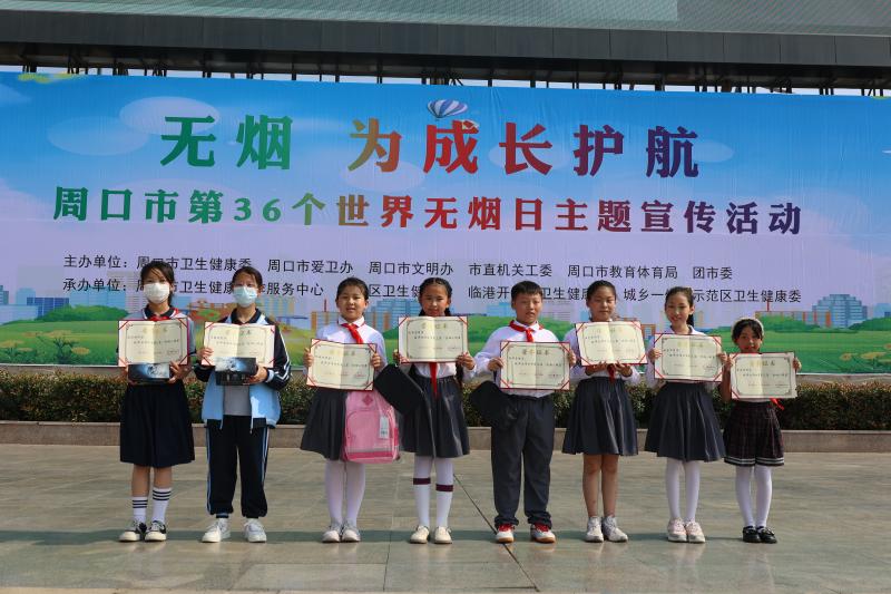 今年5月31日是第36个世界无烟日,此次活动旨在深入贯彻落实《健康中国行动(2019-2030年)》和健康周口行动专项控烟行动有关要求,进一步加强青少年控烟科普宣传教育,倡导拒吸第一支烟,践行文明健康绿色环保生活方式,共同守护青少年健康无烟成长环境。