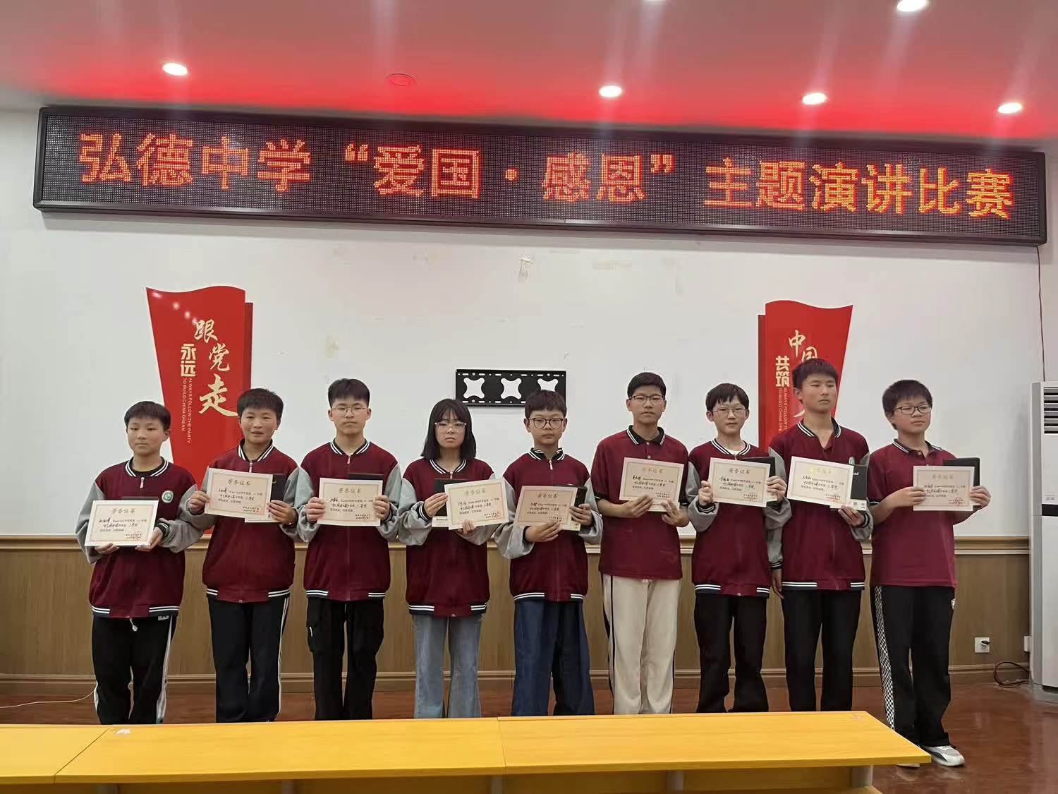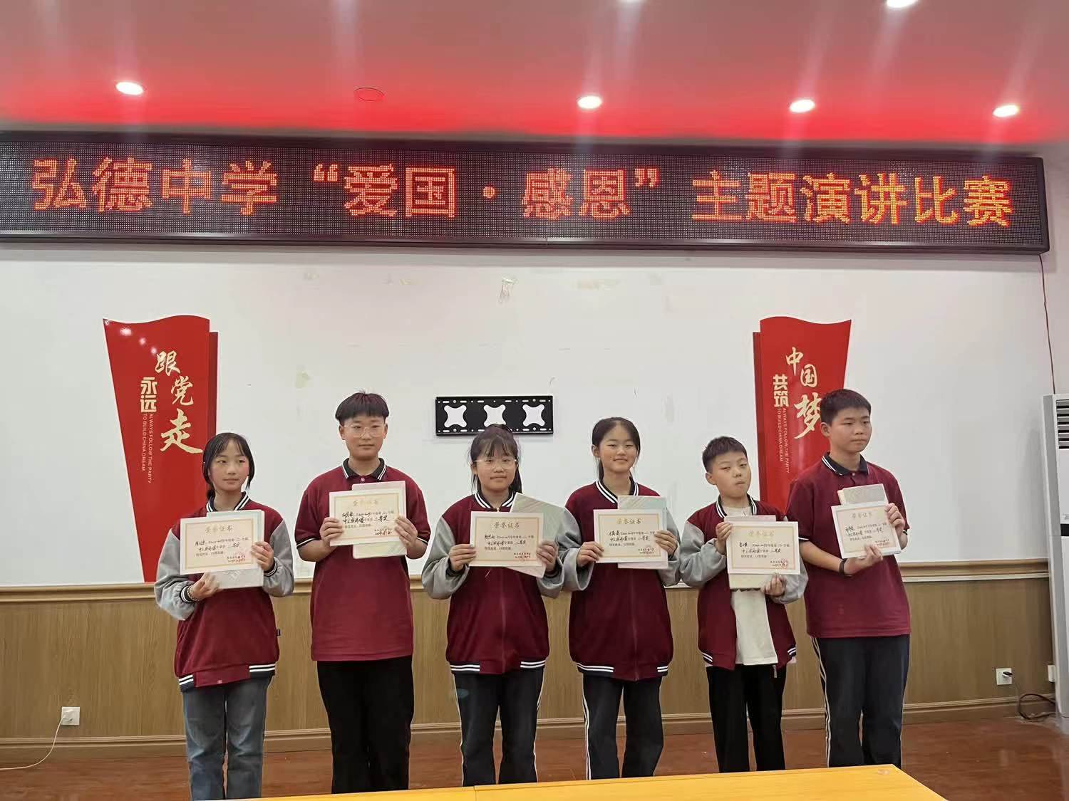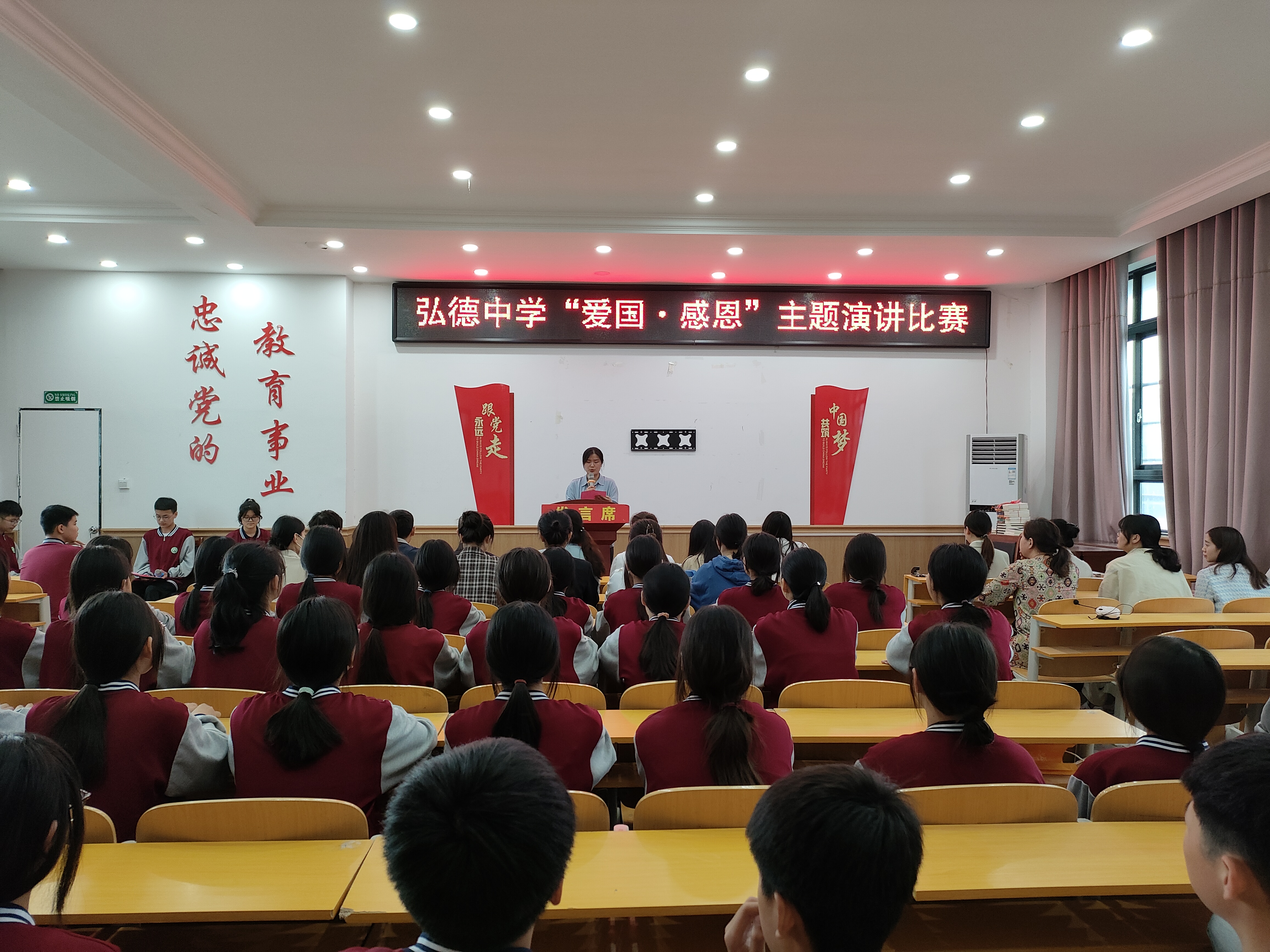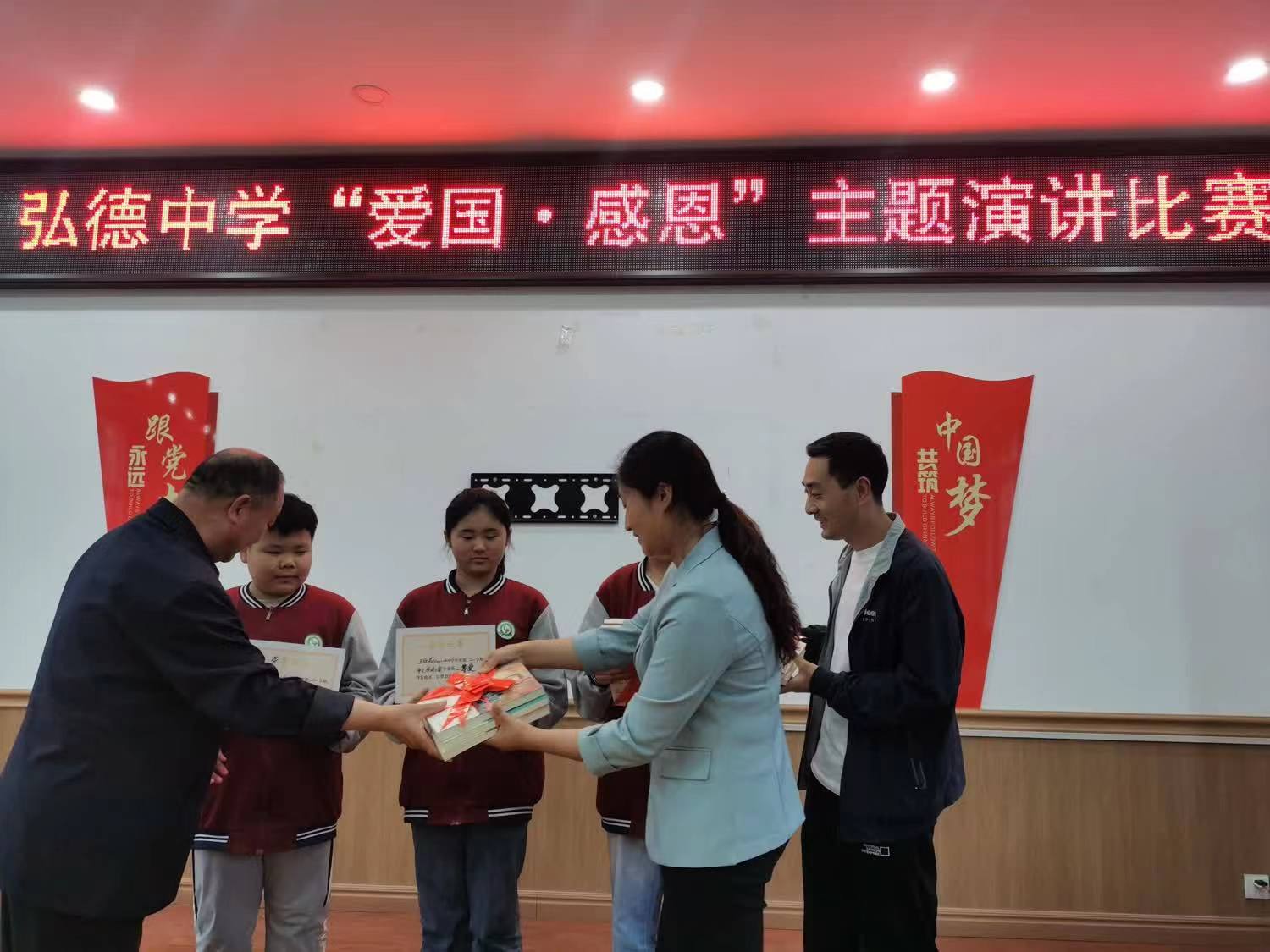 为让学生具备爱国主义意识和感恩意识,加强学生个人修养,提高学生思想道德水准,促进学生身心健康发展,6月4日,鹿邑县弘德中学举行以“爱国 ·感恩”为主题的演讲比赛。