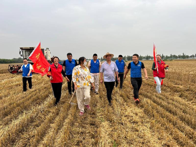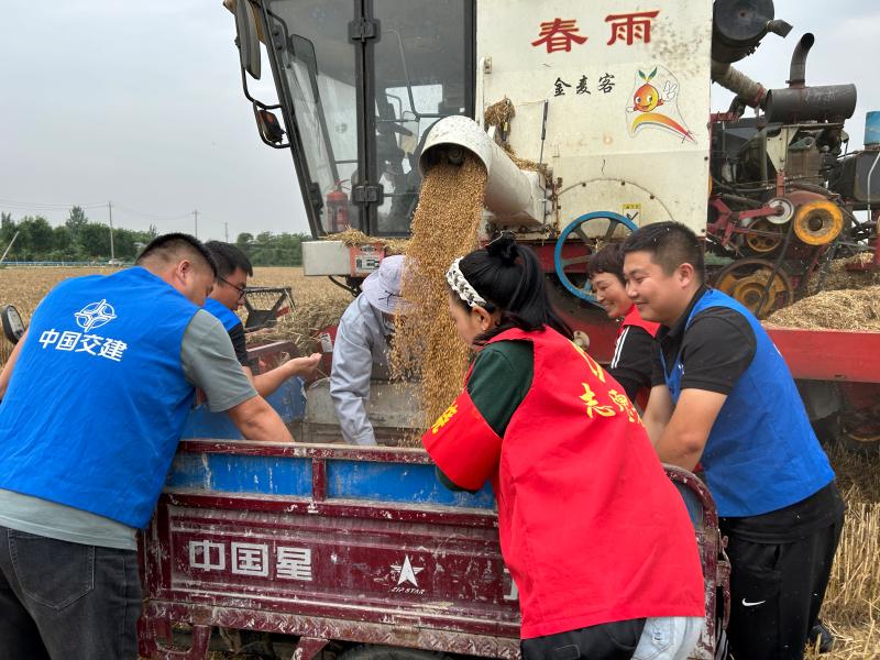 “与时间赛跑,趁天抢收!”中交二航局沙颍河项目党支部闻“雨”而动,第一时间与收割任务较重的郭寨行政村党支部结成党建联盟,抽调10名党员、青年骨干,成立“中交蓝”志愿服务队,奔赴夏收一线,帮助群众抢收抢种。