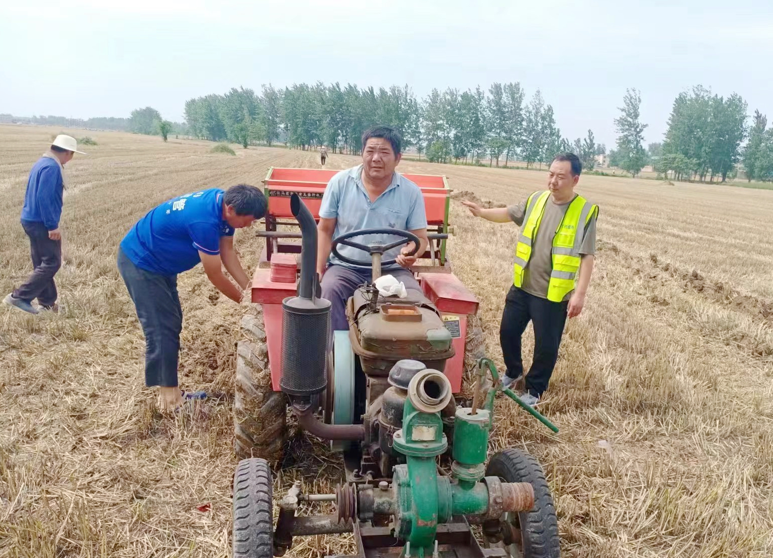 精准帮扶、不落一户。该乡组建32支不少于20人的帮扶突击队,到每家每户、每块田深入走访,了解群众收麦困难,采取有效举措尽心帮扶,拉上车、囤在家、种下地,提高困难群众的满意度。目前,帮扶突击队协助困难群众收麦5120亩、播种4810亩,完成全乡171家监测户的收割、播种任务。