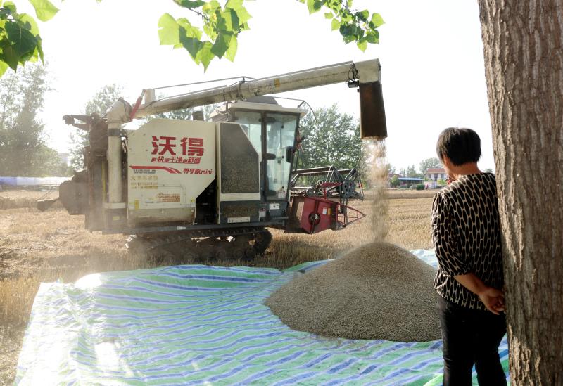 为应对积水地块小麦及早收获,县财政加大投资力度,对新购置履带联合收割机进行累加补贴。