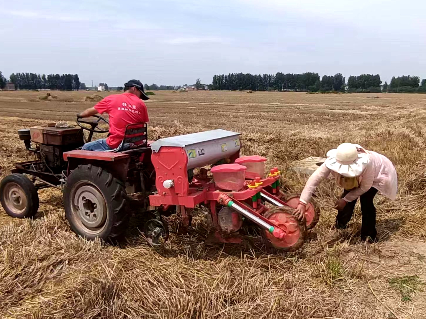 钱店镇张湾村、王楼村、梁吴村的土壤是沙地性质,镇长刘慧通过几天的学习成了“农业专家”,带领群众一边抢收一边抢种秋粮,收割机刚刚离开播种机随即进地,趁墒把大豆、玉米播种到田间,成为全县抢收抢种第一人。