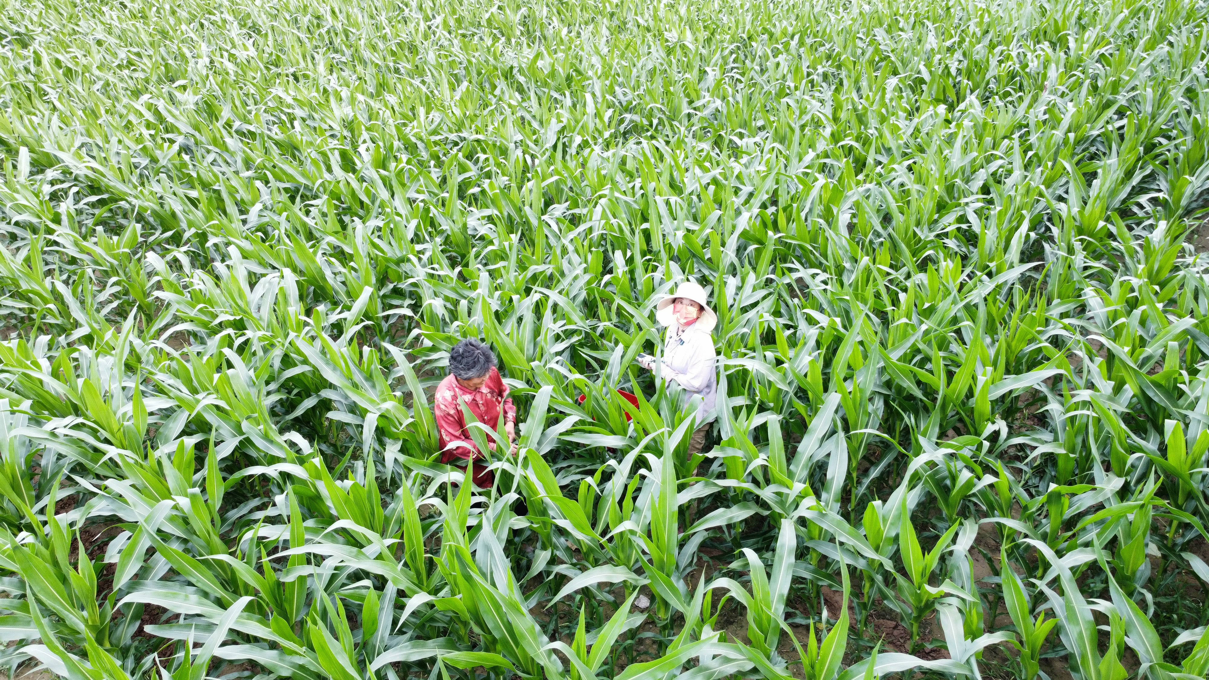 6月7日,淮阳区临蔡镇大李村农民正在春玉米地里追肥。