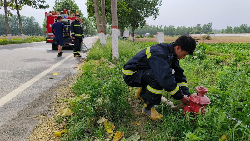 6月7日,淮阳区临蔡镇消防站的消防队员正在向消防车里加水,做好随时处理警情的准备。