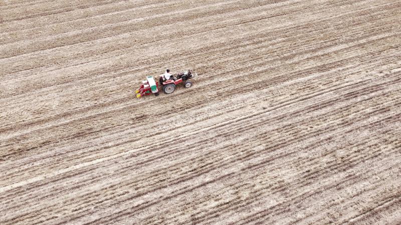 6月7日,在淮阳区临蔡镇七里棚村一处深耕后的麦田里,农民正趁墒抢种,力争不误农时、以秋补夏。