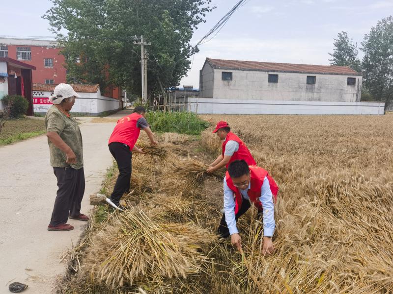 为减少降雨天气对夏收工作的影响,切实帮助群众做好“三夏”生产各项工作,沈丘县退役军人事务局驻村工作队带领退役军人志愿服务队积极帮助农户开展抢收抢种工作。号召群众趁天抢时尽快收割,趁天晾晒,注意安全生产,确保颗粒归仓、夏种及时。除此之外,退役军人志愿服务队还走村入户向群众宣传抢收抢种政策和秸秆禁烧,帮助群众树立“三夏”安全生产意识,保障群众丰产丰收。