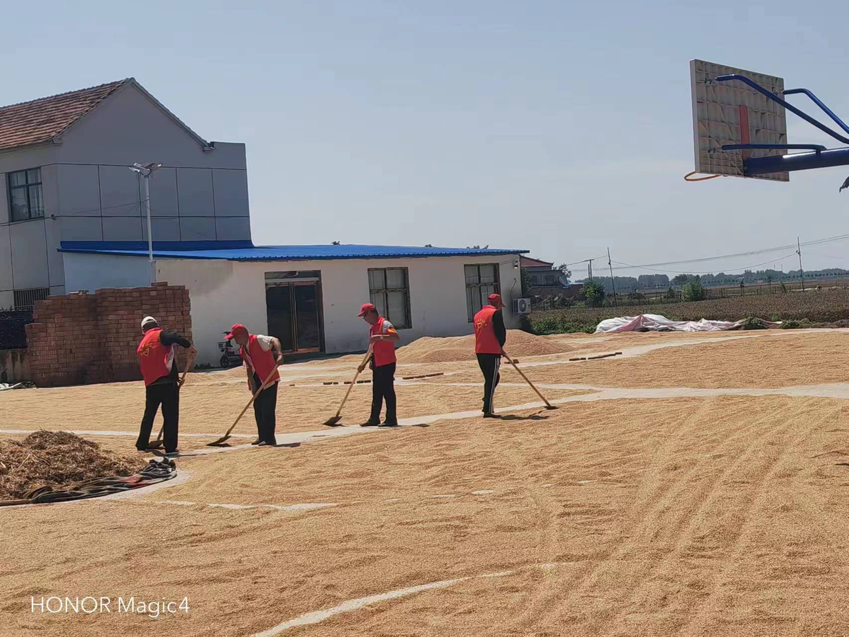 “抢在雨前,俺村干部连夜帮我们把小麦收了,拉到家里,今天天刚放晴,正愁去哪里晒麦子,村里的帮扶小分队就帮着拉到村文化广场来了,再也不怕麦子堆起热发霉了。”商水县魏集镇胡屯村文化广场上,65岁的“三类监测户”胡长河日前一边翻晒自家的小麦,一边说。放眼望去,村委大院、文化广场、村大小水泥路两侧,都变身“金色晒场”,风吹麦浪,一片金黄。