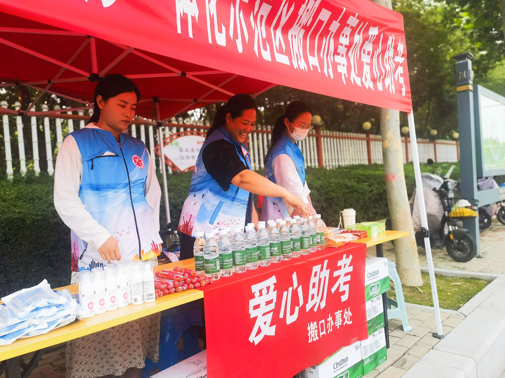 一年一度的高考不仅牵动着考生及家长的心,也吸引着全社会的目光。“爱心送考”已升级成全社会共同参与的助考活动,也成为示范区新时代文明实践和爱心公益的重要品牌,是文明城市建设的一面旗帜。在文昌中学考点附近,示范区志愿服务站及文昌办事处、搬口办事处志愿服务站为考生提供饮用水、风油精、清凉油、口罩等物资,方便考生取用;在郸城一高周口校区考点附近,许湾办事处组织爱心企业组成爱心助考团,为考生及家长提供相关服务;体育宾馆爱心助考点则为考生准备了消暑的绿豆汤、西瓜及象征好运的红丝带,为考生加油;周口城投集团则准备了写有“奋斗吧少年”“为梦想而战”“稳住,我们能赢”等字样的应援牌,安排人员在考点附近全天候值守,为高考助力;还有不少商家纷纷拿出“镇店之宝”,餐饮企业提供食物、奶茶店提供饮品,全社会都在为高考奉献爱心。