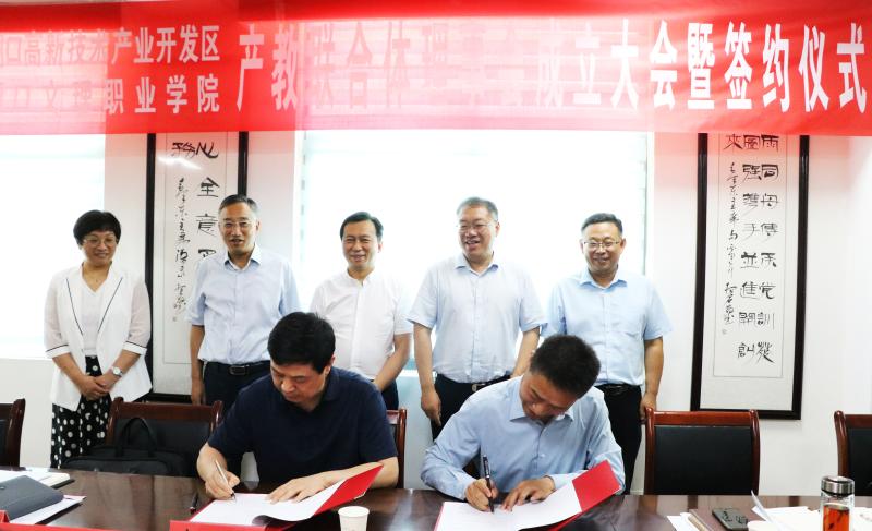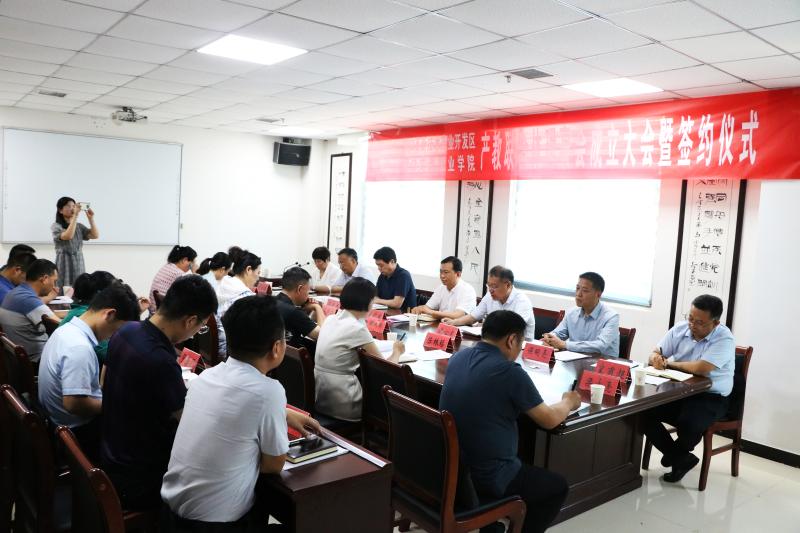 会上,周口文理职业学院与周口高新技术产业开发区签署《共建市域产教联合体协议》,宣读理事会组成人员和《周口高新技术产业开发区产教联合体章程》。