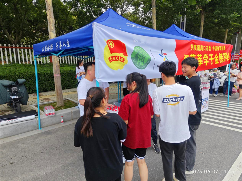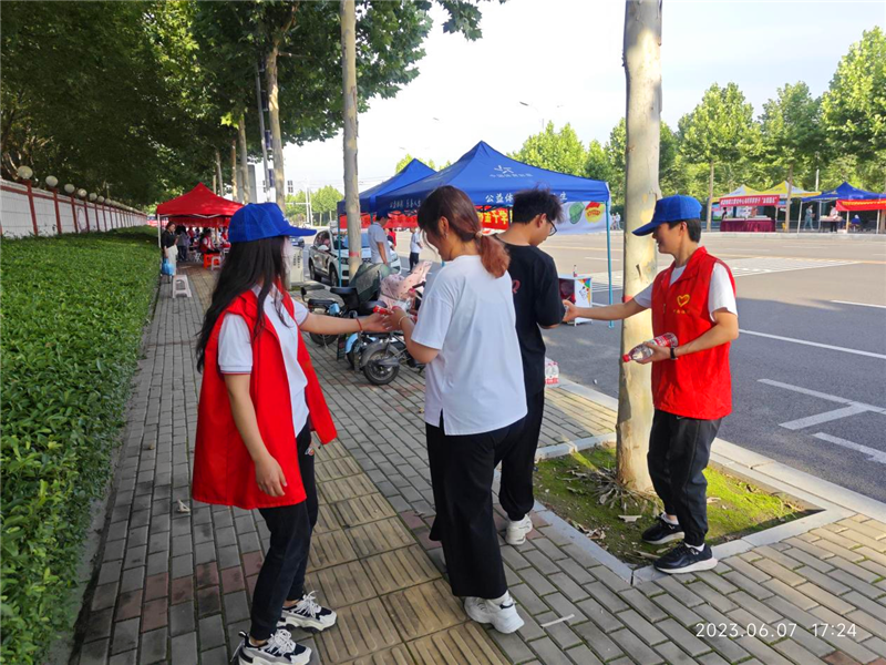 6月7日上午,一年一度的高考如期进行。为助力学子顺利考试,奉献社会爱心,河南省体育彩票管理中心周口分中心联合共青团周口市委,在周口市文昌中学考点设立服务站点开展爱心助考活动。