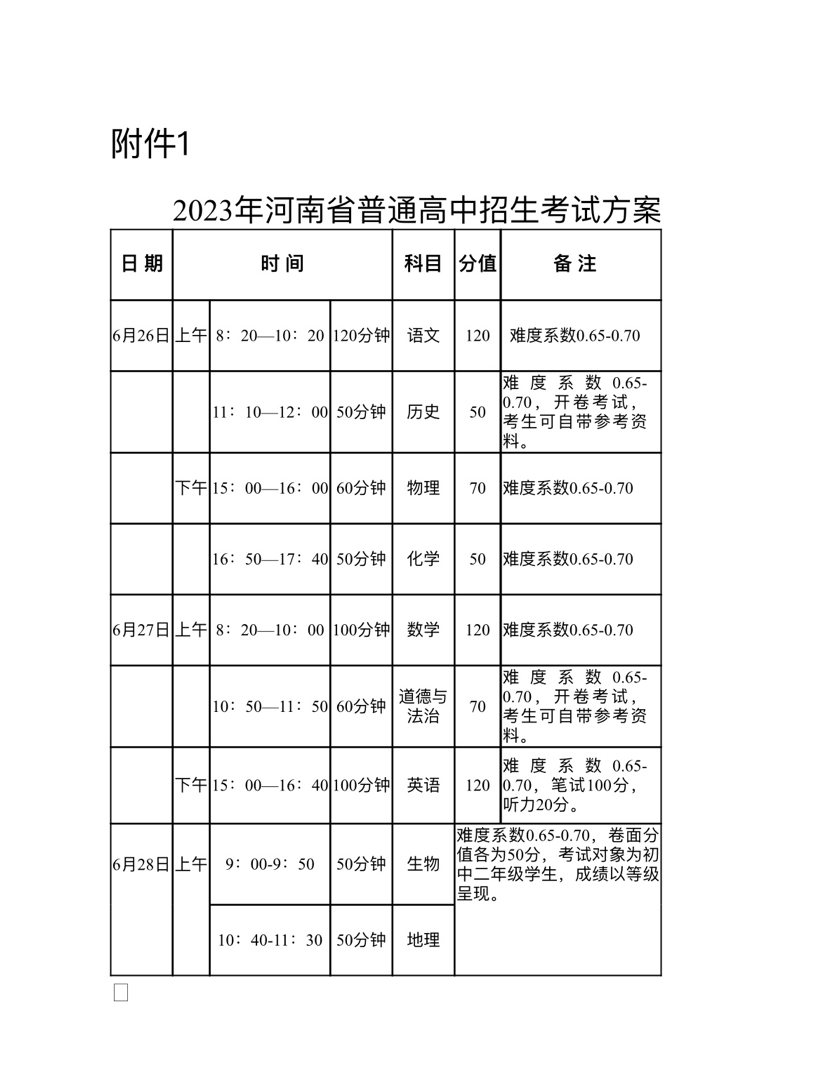 今年全省中招考试的时间为6月26日——28日,其中26日、27日为九年级考试时间,28日上午为八年级考试时间。每科考试时考生应提前到达考点,留足进场时间。具体考试时间为:6月26日8:20—10:20考试语文科目,11:10—12:00考试历史科目(开卷考试,考生可带参考资料),15:00—16:00考试物理科目,16:50—17:40考试化学科目。6月27日8:20—10:00考试数学科目,10:50—11:50考试道德与法治科目(开卷考试,考生可带参考资料),15:00—16:40考试英语科目(笔试100分,听力20分,特别提醒:英语科目14:25开始入场,14:45后禁止考生入场)。6月28日9:00-9:50考试生物科目,10:40-11:30考试地理科目,其中生物和地理科目卷面分值各为50分,考试对象为初中二年级学生,成绩以等级呈现。