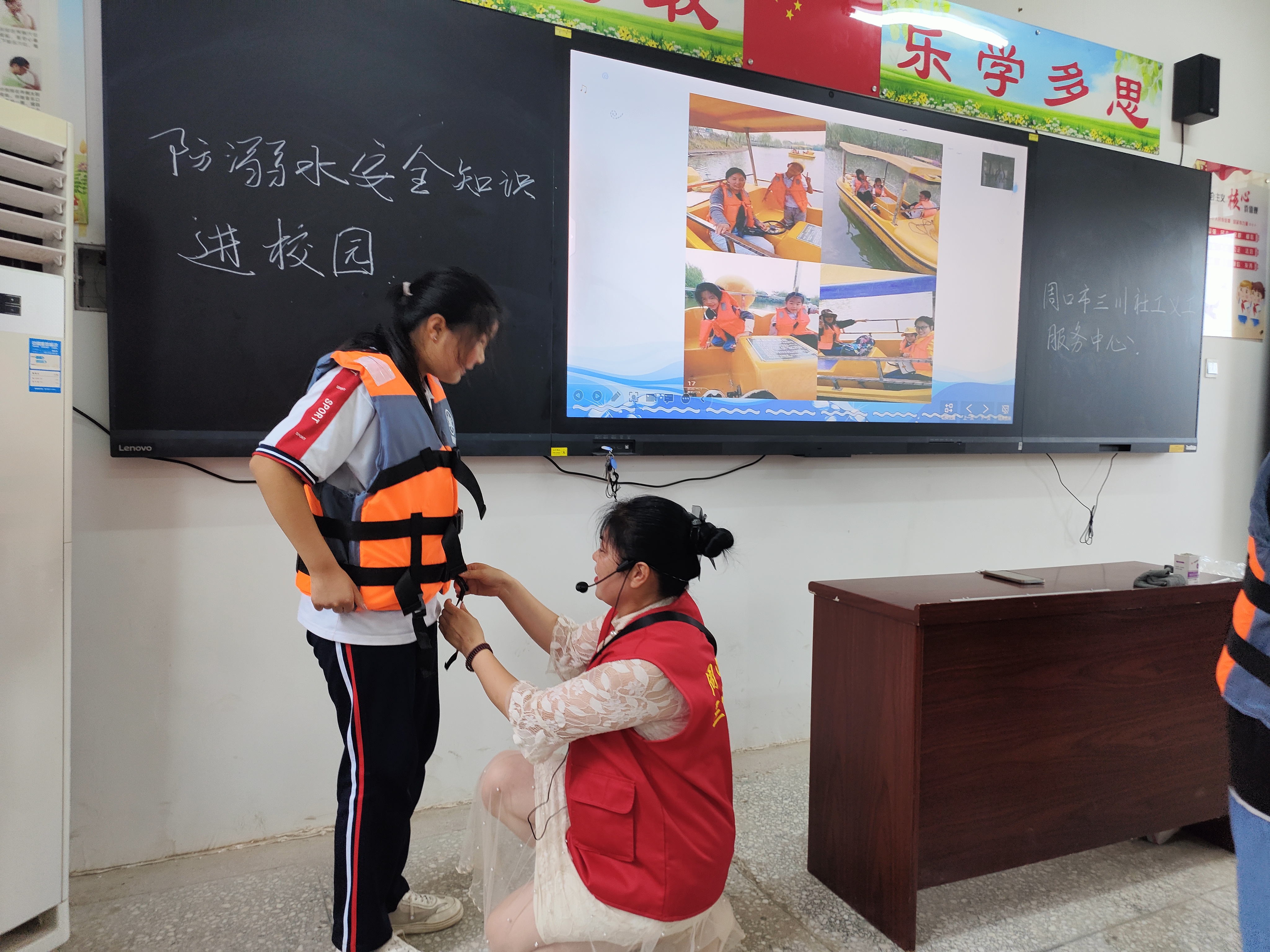 暑假即将来临,为了学生们的假期安全,周口市三川社工义工服务中心的志愿者走进周口市第十七初级中学小学部开展防溺水安全知识培训进校园活动。