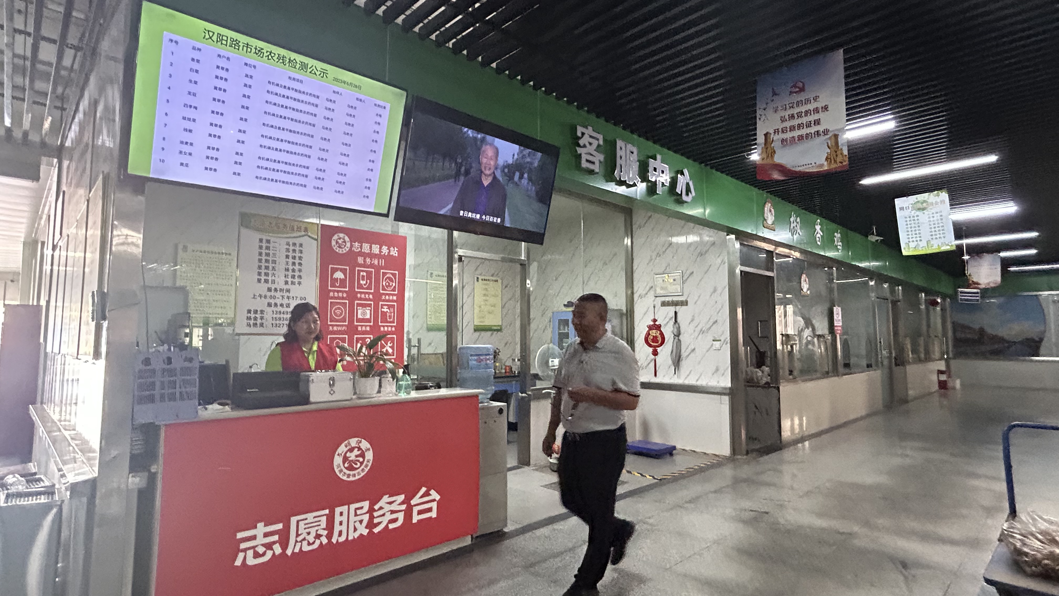 农贸市场是展示城市形象的重要窗口。在汉阳路农贸市场入口,记者看到,入市须知、市场环境卫生制度、卫生文明“十不”行为规范、病媒生物防制工作等宣传栏内容清晰明了。志愿服务台上方的大屏还显示着该市场抽检产品农残检测公示名单。“我家离这个市场大概有2公里,但是买菜还是选择来这,相比较以前,现在市场管理很好,菜品新鲜又便宜,商贩也从不缺斤少两,我们买菜是开心又放心。”一位正在摊位前挑选肉类的市民笑着说。据了解,该市场现在有固定摊位40余个,配备有食品安全检测室,客户服务中心、产品展示区、购物休闲区,属于体验式农贸综合体。
