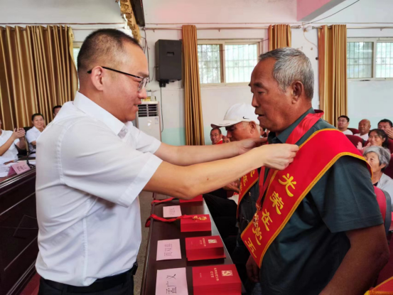 颁发一块纪念章。为进一步增强党员的归属感、获得感、荣誉感,凝聚思想共识,致敬老党员,江村镇对50年以上党龄的老党员颁发“光荣在党50年”纪念章,江村镇主要领导对老党员们为党和家乡事业的拼搏与付出表示感谢,并表示:江村的发展离不开每一位老党员的心血和努力,也希望老党员们继续发光发热,充分发挥政治优势、经验优势、威望优势,为江村镇各项工作开展建言献策,贡献力量。同时希望年轻党员要大力弘扬老党员对党忠诚优良传统,拿好“接力棒”,跑出加速度,以“功成不必在我,功成必定有我”的奉献精神,担当作为,推动江村经济社会高质量发展。