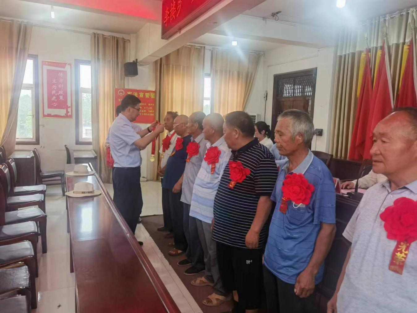 近日,郸城县李楼乡举行“光荣在党50年”纪念章颁发仪式,该乡党委书记从良鸣为受表彰老党员颁发“光荣在党50年”纪念章。