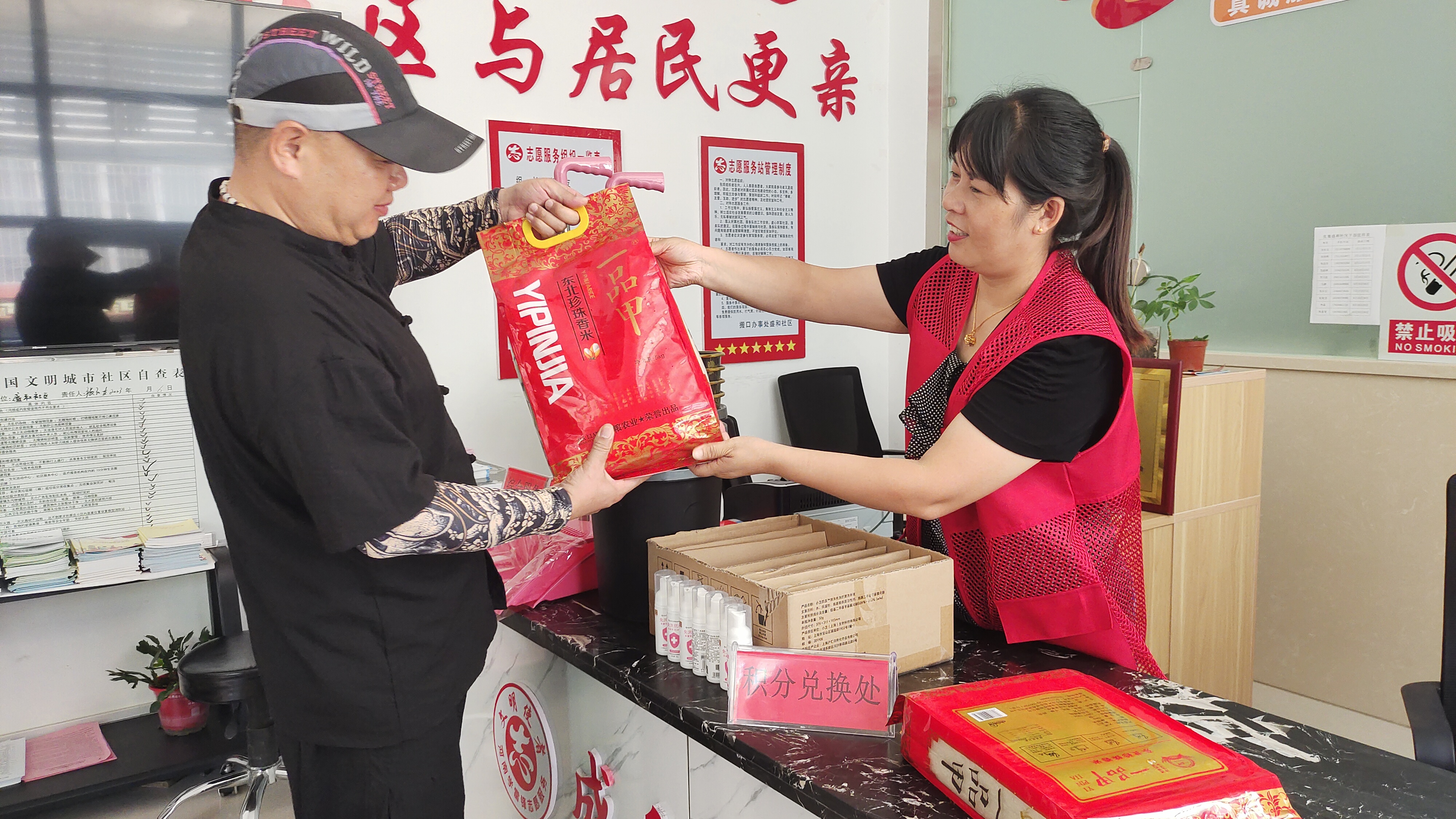 积分兑换超市从制度设置到分值统计,从积分兑换再到货品设置,形成了闭环流程。据介绍,为推动创建国家文明城市工作走深走实,盛和社区依托新时代文明实践站,采用积分兑换形式,在党群服务中心打造爱心积分动态超市,社区群众通过参加志愿活动、拍摄不文明行为、清理牛皮癣广告、自主参加小区治理活动等多种方式来获取积分,积分以一周一评比的形式累计,在每个月固定时间可以到积分超市进行商品兑换。“经过一段时间的探索和实践,目前‘积分超市’已逐步成为建设文明社区、培养良好风气的新载体,可以有效引领社区居民积极参与到‘创文’活动中来,用行动换取积分,用积分兑换物品,用居民看得见、摸得着的方式,让大家感受到付出的快乐,展现社区文明新气象。”该社区党支部书记张红友说。②16