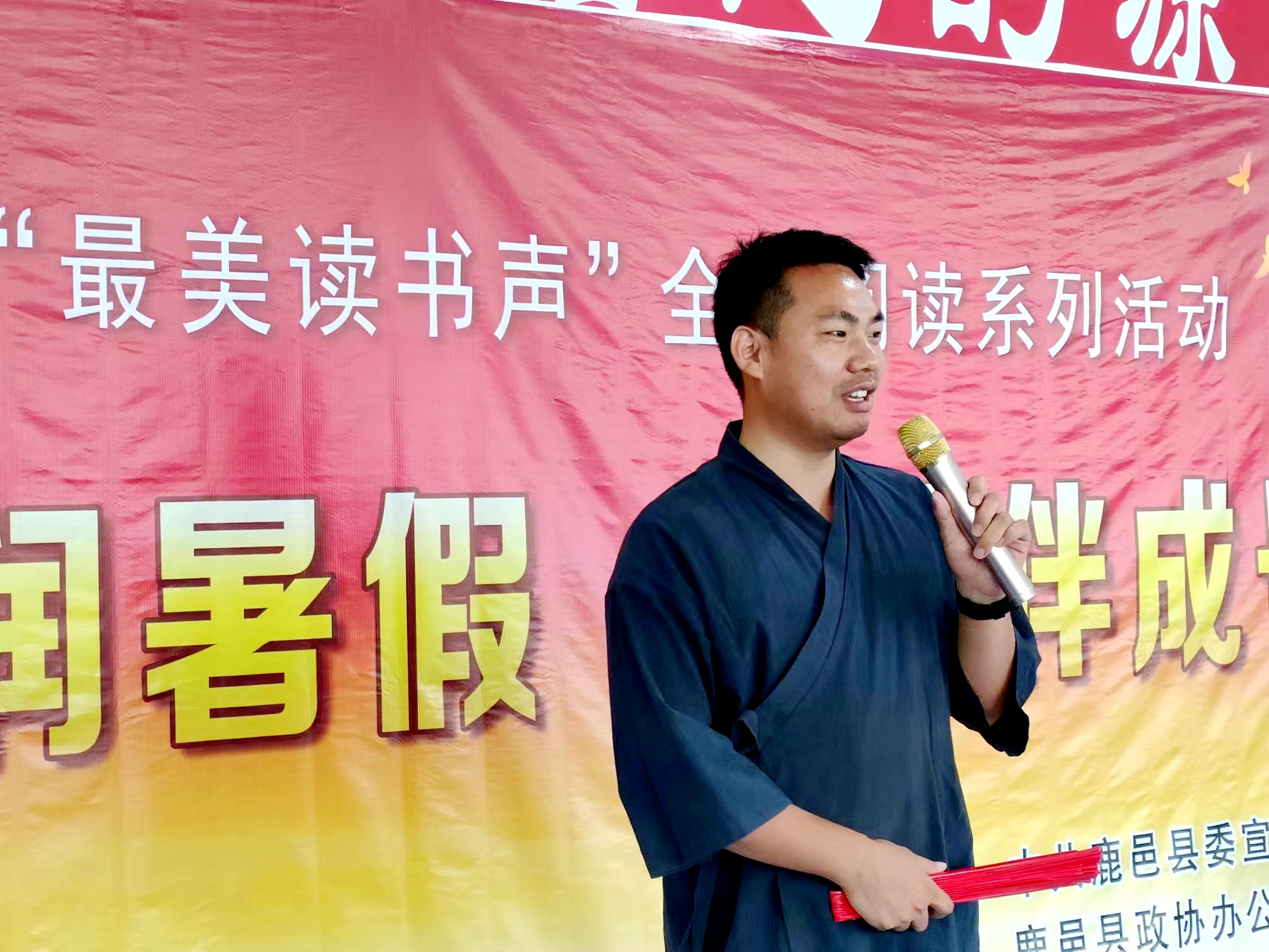 “永和九年,岁在癸丑,暮春之初,会于会稽山阴之兰亭,修禊事也......”7月15日上午,在鹿邑县政协主办的“鹿邑最美读书声”系列活动现场,县政协委员马登领现场朗诵名篇《兰亭集序》,迎来了阵阵掌声。