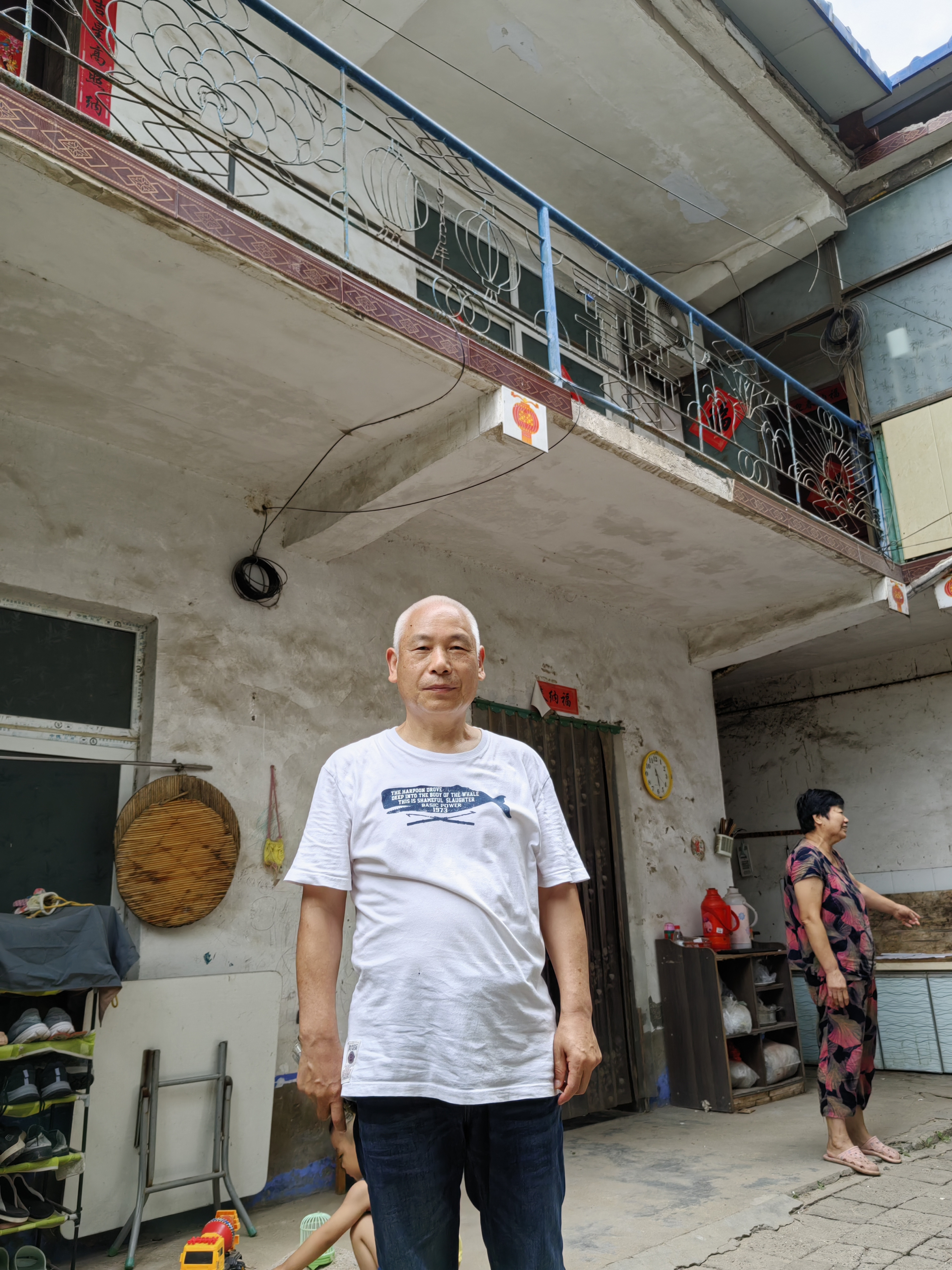 头型浑圆,白发葱茂,短竖而密;身体结实,肌肉紧实,普通的一件文化衫身上一罩,整体看上去像个蓄发罗汉;思维敏捷,博闻强记,紧贴时代,66岁的老兄,精神气质却像个小青年!