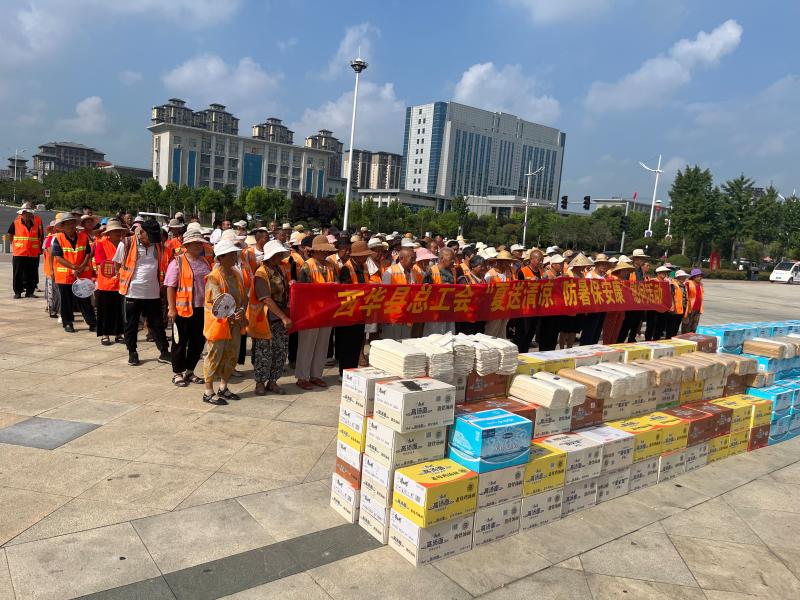 不与桃李争春风,七月流火送清凉。7月20日,西华县总工会举行“工会送清凉、防暑保安康”活动,为头顶烈日、辛勤奋战在一线职工送去毛巾、矿泉水等防暑降温大礼包,让他们在炎热的夏日感受到了清凉。