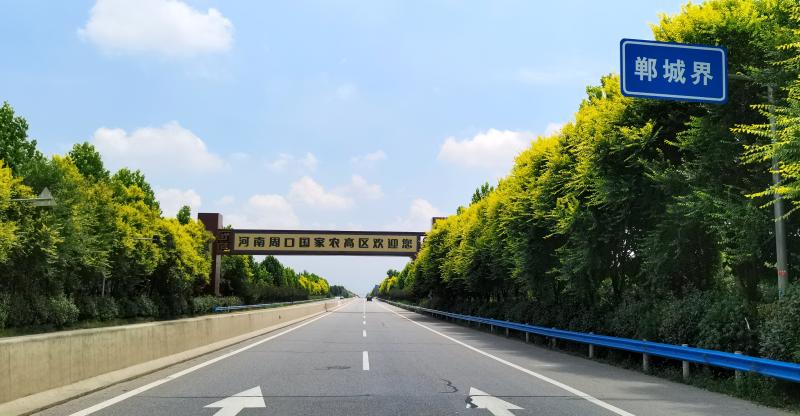 7月24日,记者驱车沿周口市文昌大道周口至郸城方向行驶时,在郸城县与淮阳区交界处看到,郸城之门有了新标识:河南周口国家农高区欢迎您。